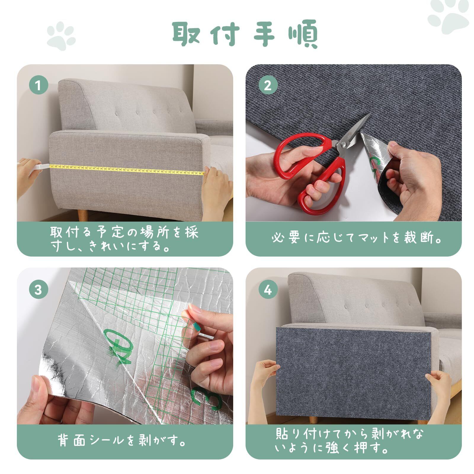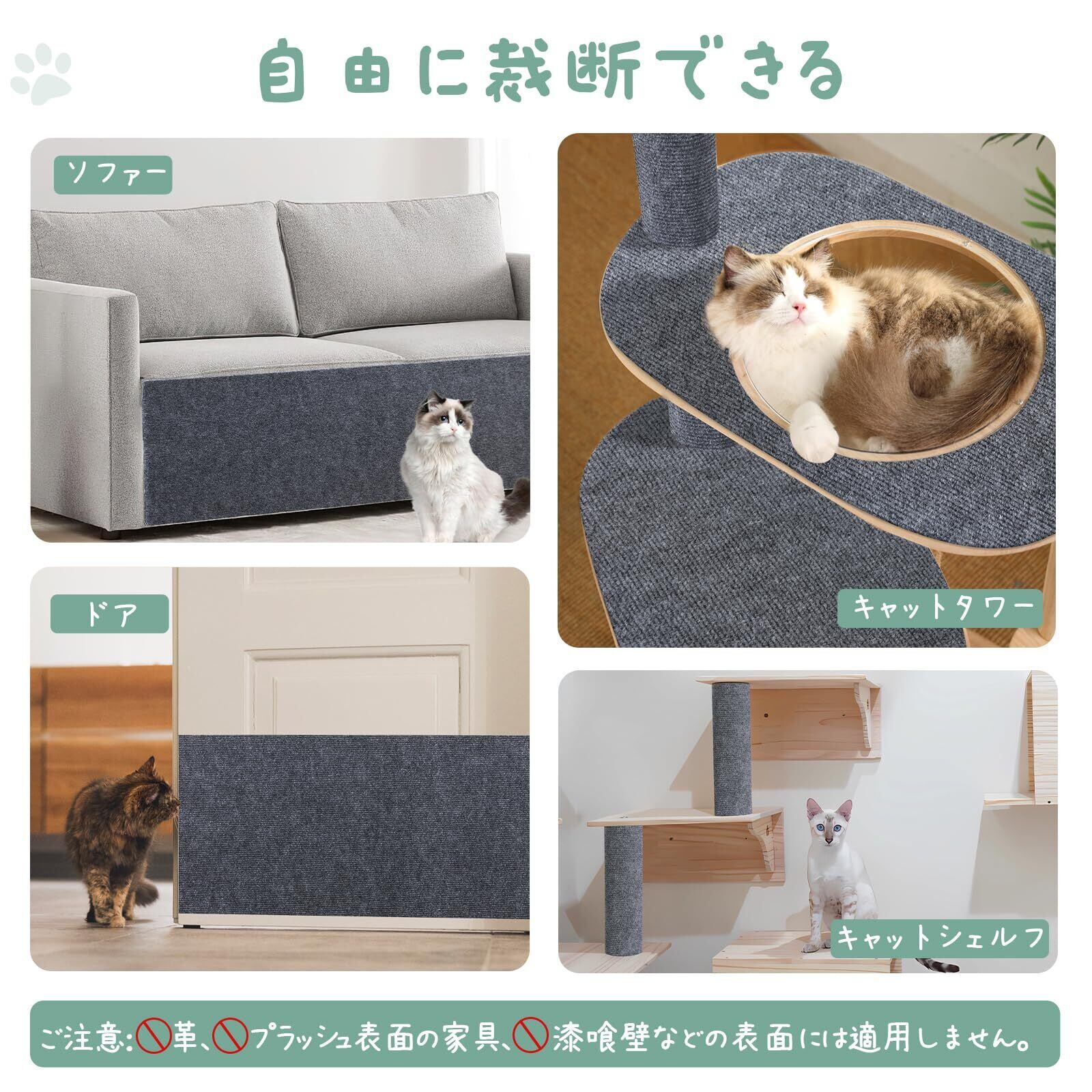 「多種の場所に適用」 自由にカットできるため、本製品は様々の場所に使用できます。例えば壁、布/木製ソファー、戸棚、タンスなどネコちゃんが爪とぎしがちな場所に適用します。更に、キャットタワーなどのリペアにも使えます。ご注意:革、ベルベット、マイクロファイバーの表面、または特殊塗装加工された表面には適用しません。