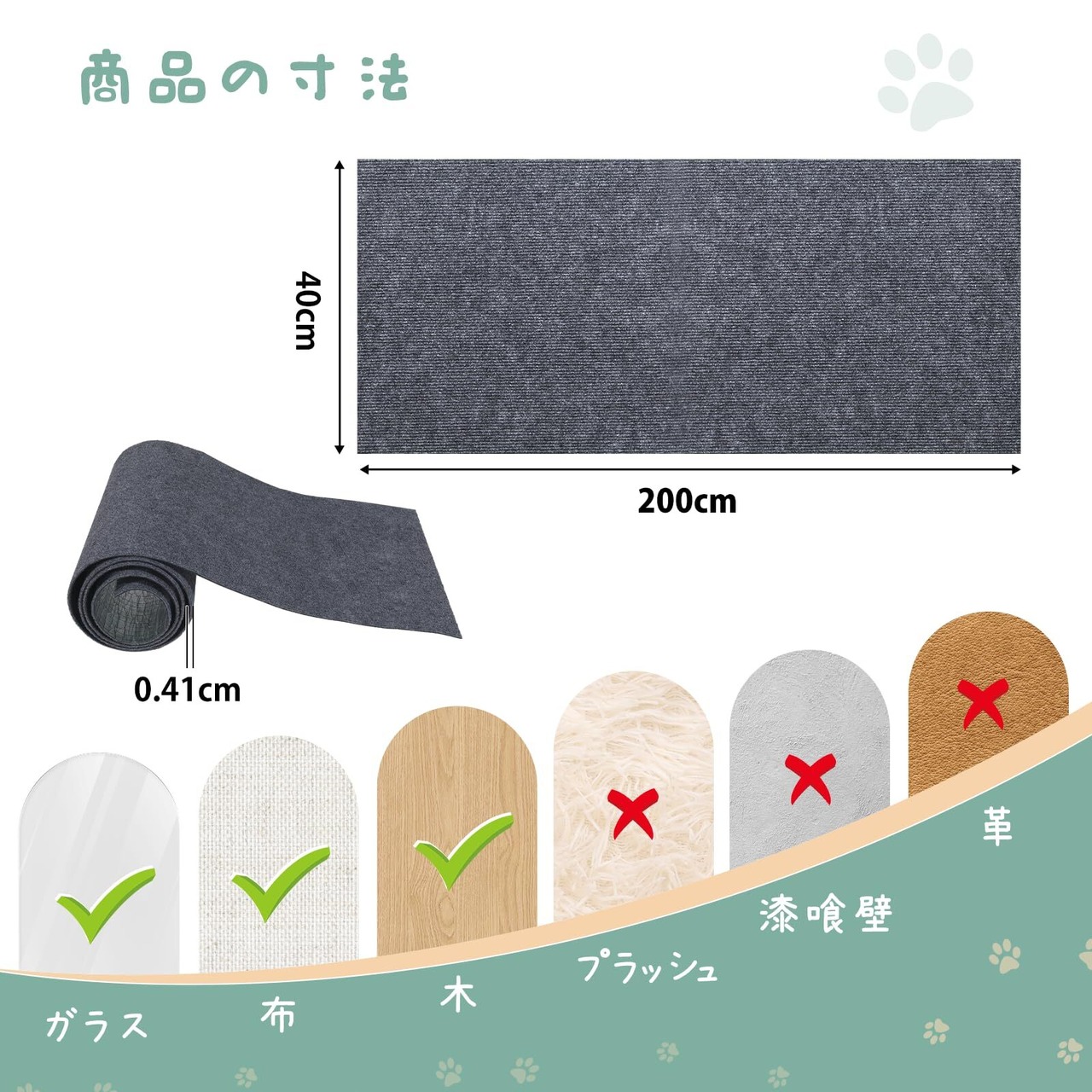 Pawaboo 猫 爪研ぎ防止シート 猫 爪研ぎ 猫用爪とぎマット つめとぎ 爪研ぎ 猫 つめとぎポールリペア キャットタワーリペア カーペット 自由にカットできる 壁に貼る 幅40cm ソファー保護 床保護 壁保護 ロール 家具保護 インテリアに馴染む ダークグレー 40×200cm | yankees