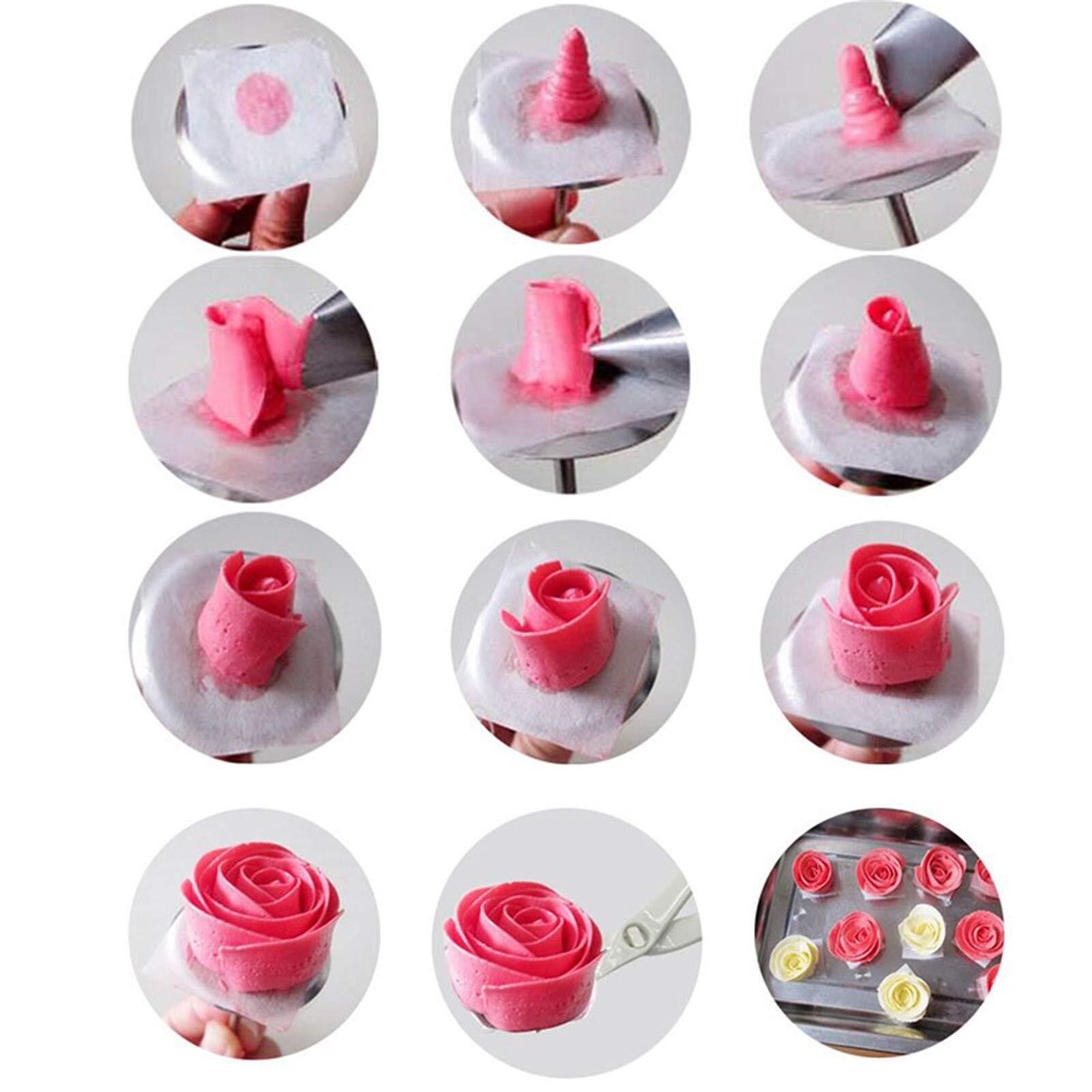 絞り口金は清潔で錆びません。クリームバラが作れ、ケーキのデコレーションに適しています。リフターはクリームフラワーをフラワーネイルからケーキに移動させる時に便利です。