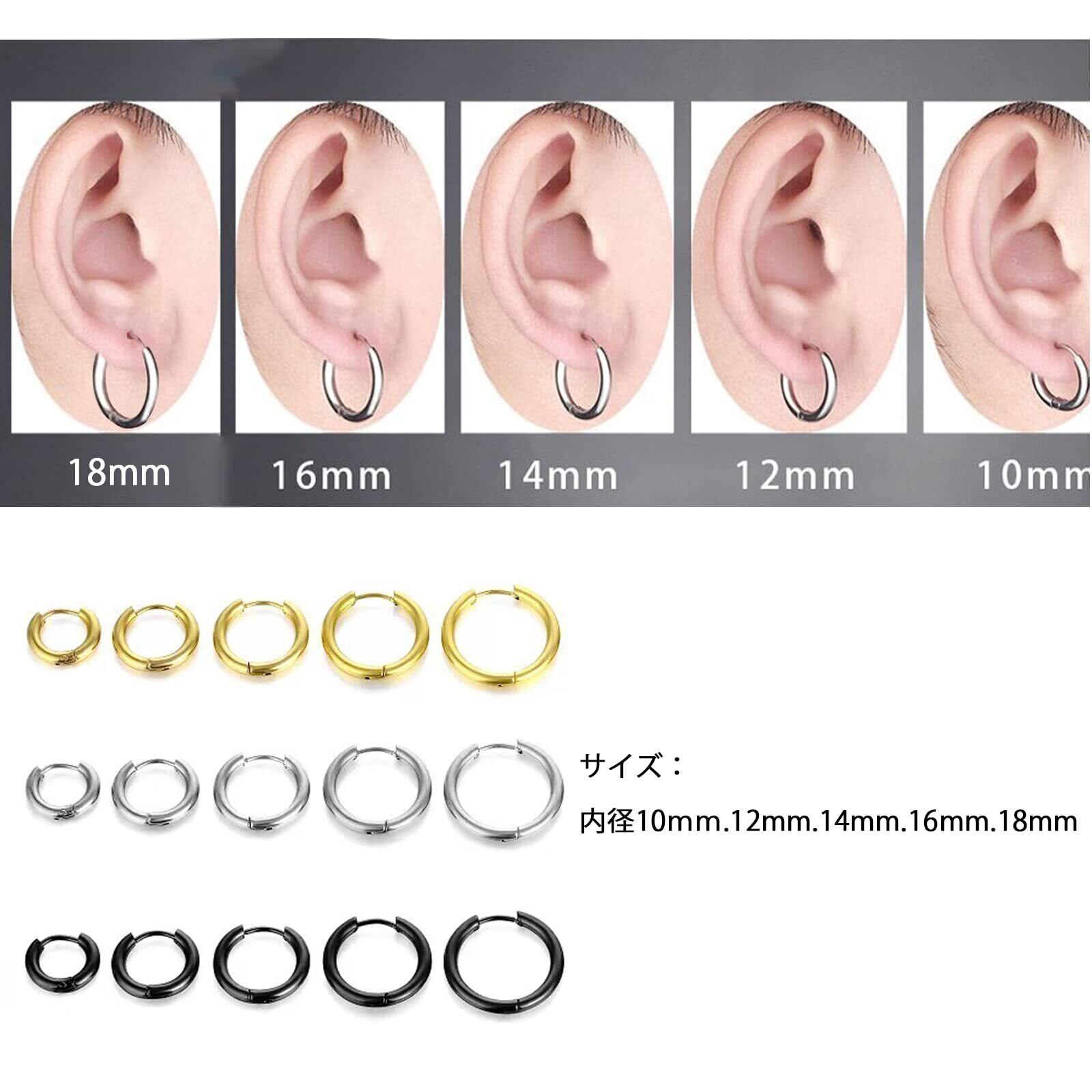 Senteria フープピアス リング メンズ レディース 両耳用 サージカルステンレス イヤリング セット 金属アレルギー対応 シンプル 人気 5ペア(サイズ10mm-18mm、幅2mm、 ゴールド、シルバーブラック) | yankees