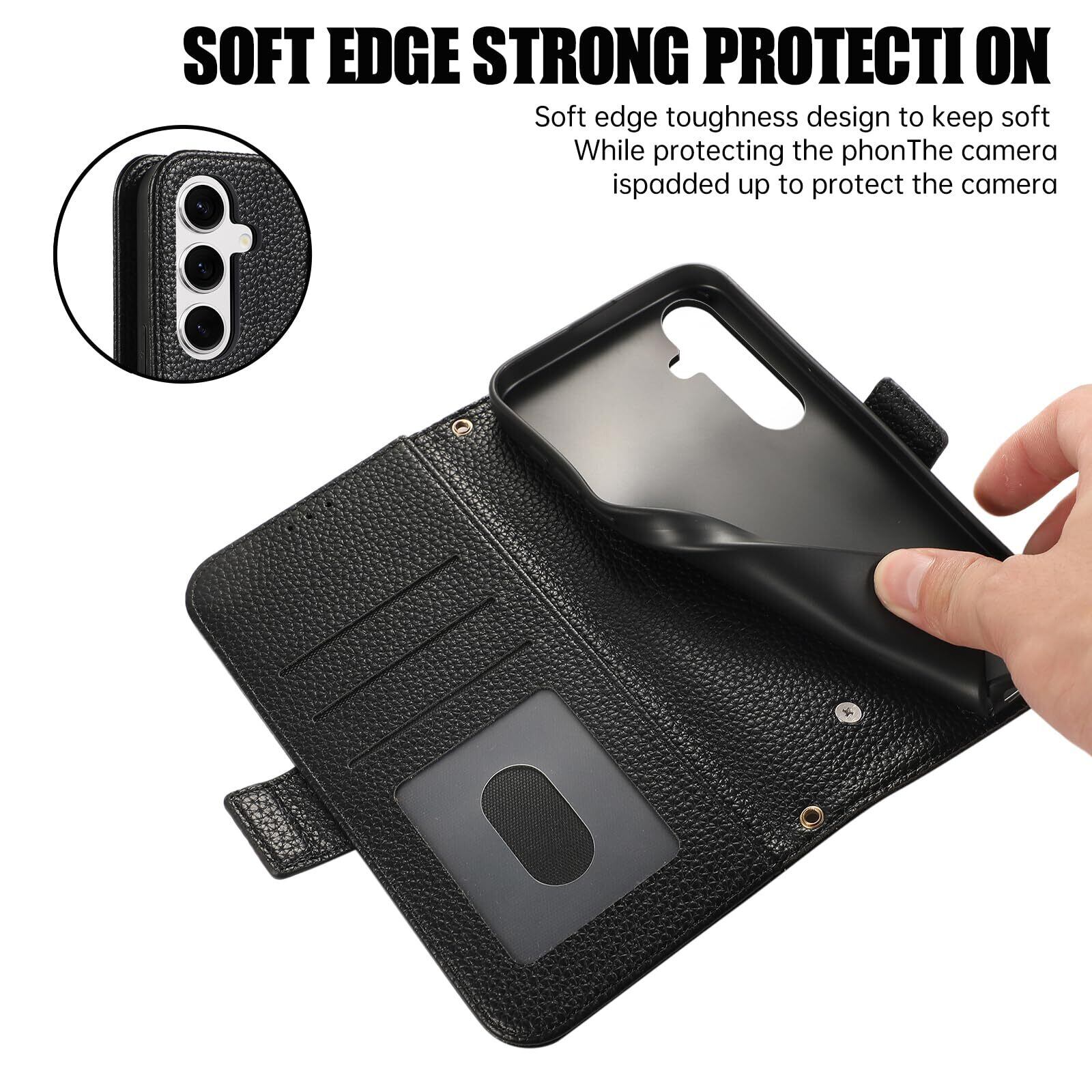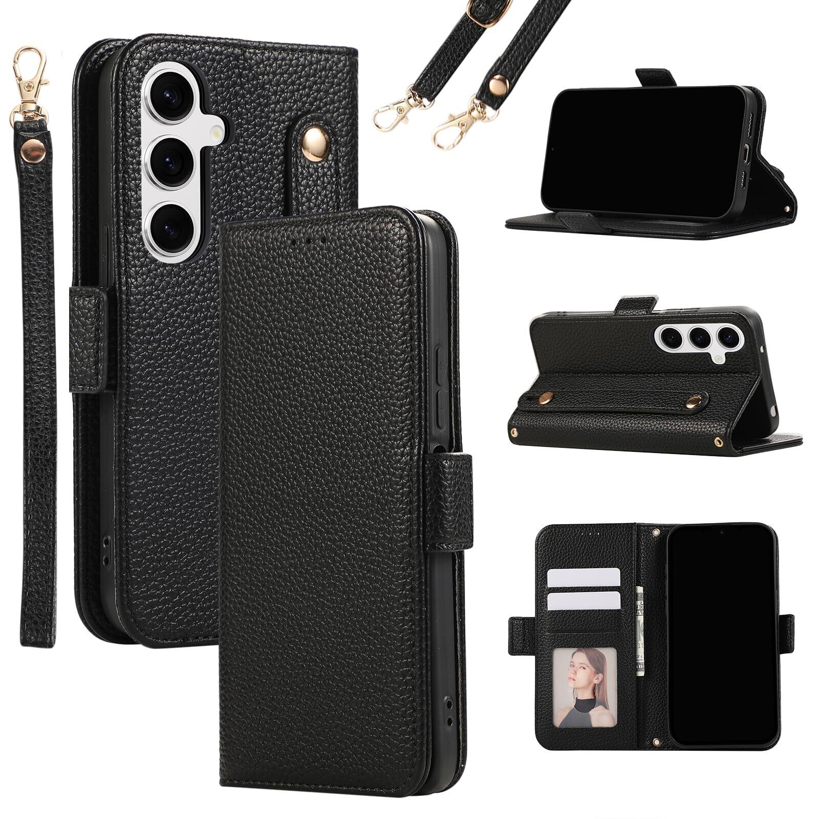Galaxy S24 ケース 手帳型 おしゃれ ギャラクシー s24 スマホショルダー 肩掛け 携帯ケース 片手操作 グリップループ付 落下防止 サイドマグネット SC-51E 財布型 カバー カードポケット付き au SCG25 カバー グーグル 全面保護 Samsung S24 携帯カバー 横置きスタンド機能 PUレザー (ブラック, Galaxy S24)