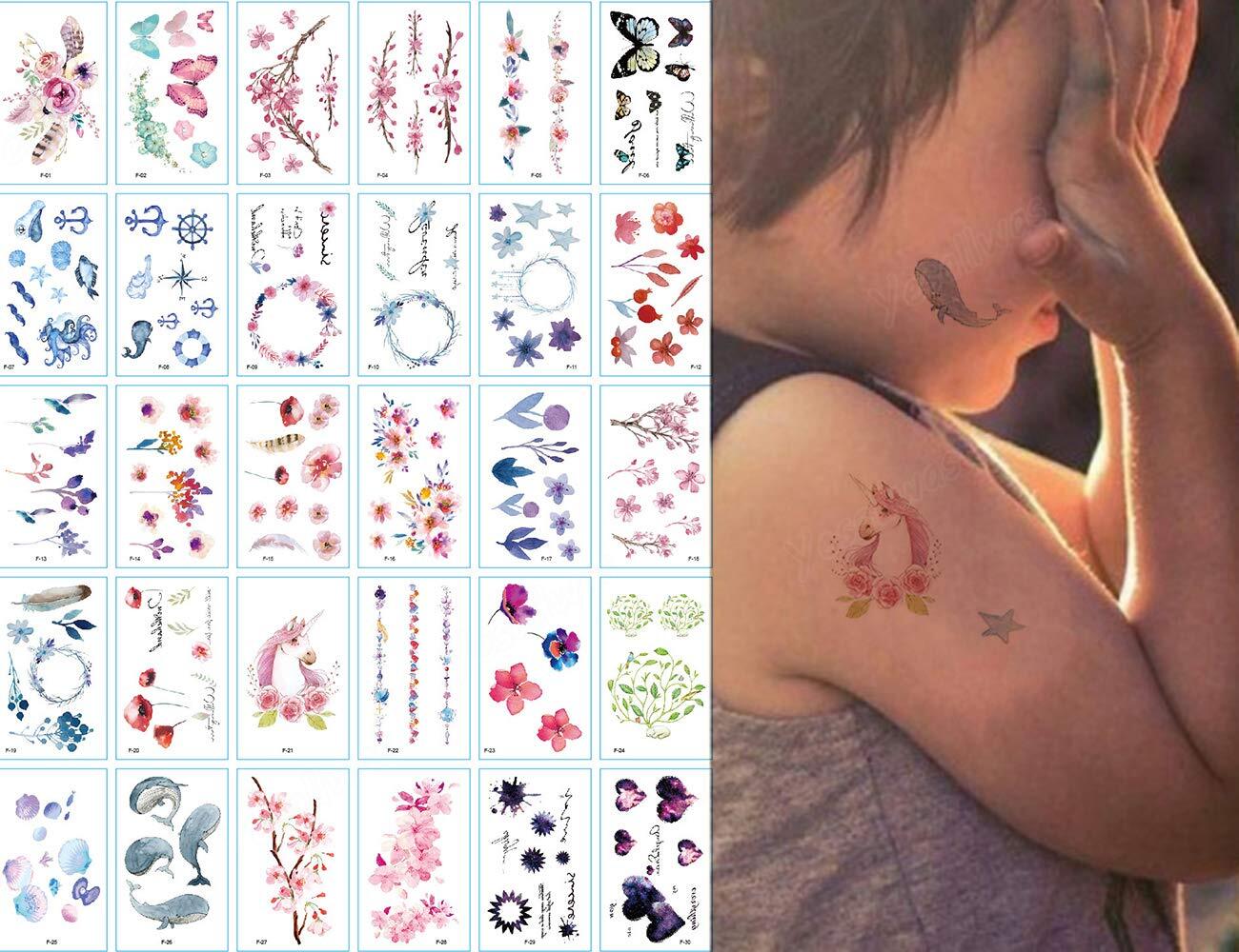 【セット内容】かわいい タトゥーシール 30枚セット。含まれもの:かっこいい 花、薔薇 蝶、蝶々、バタフライ、桜 ピンク、緑の葉、青。