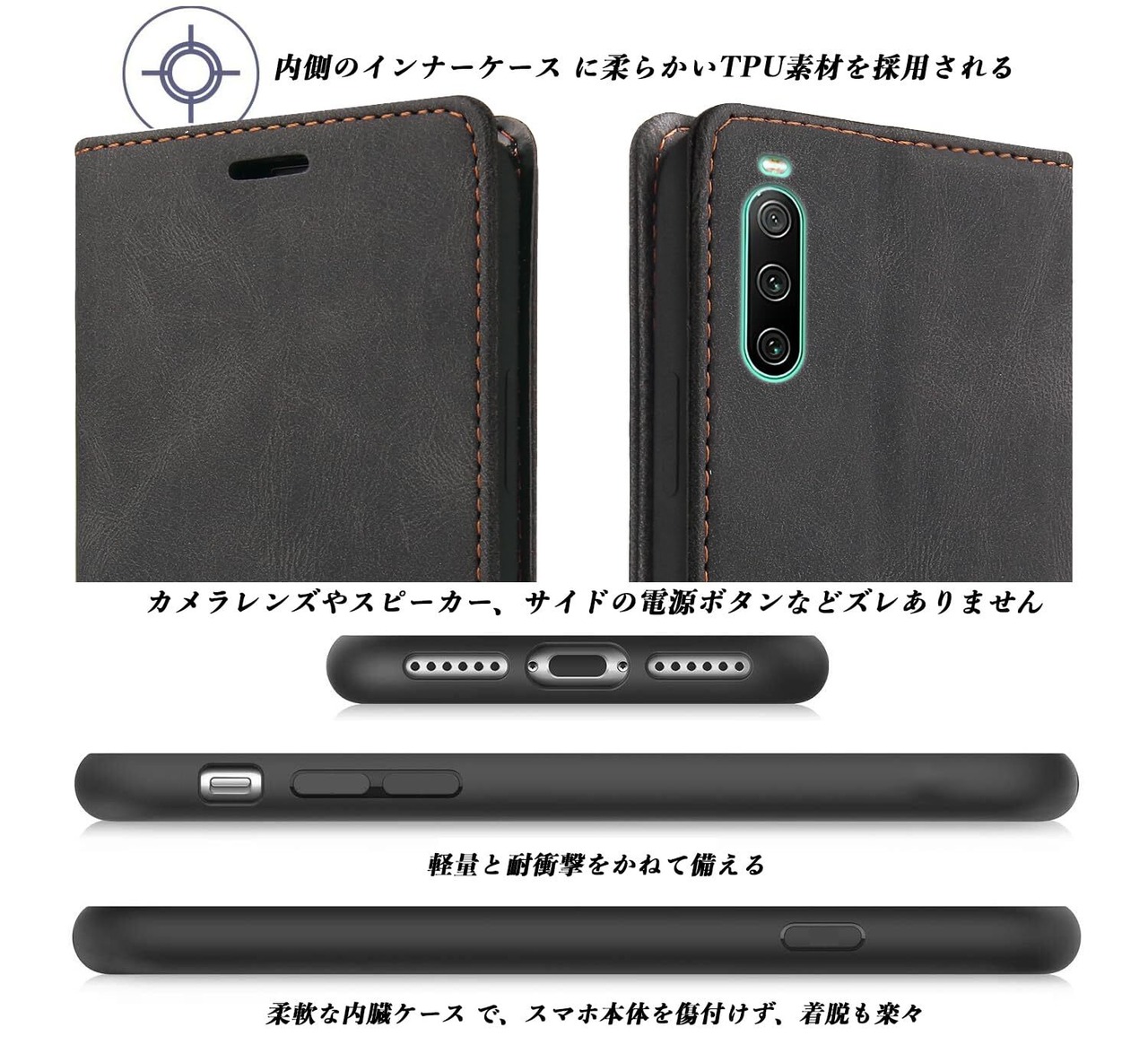 UnivoColors Sony Xperia 10 V(SO-52D/SOG11) 手帳型ケース 高級合皮 スタンド機能 カード収納 マグネット式 TPUソフトカバー 全面保護 カメラ保護 衝撃吸収 RFIDブロッキング おしゃれ カバー(ブラック) | yankees