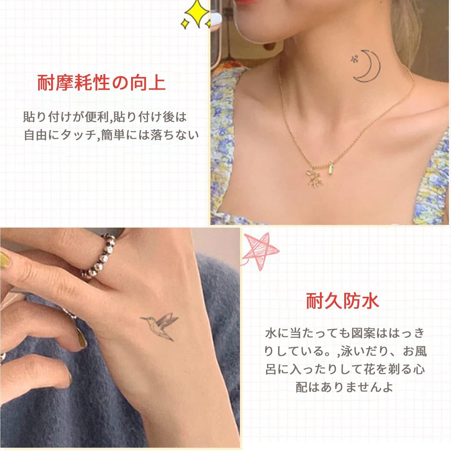 【注意事項】タトゥーシールを付ける前は肌に乳液や日焼け止めをつけないでください、付けなくなる可能性があります。目や口の周りの敏感のところや傷、かぶれのあるところは避けてください。肌にかゆみなどの異常を感じた場合は、即取り除いて、使用しないでください。