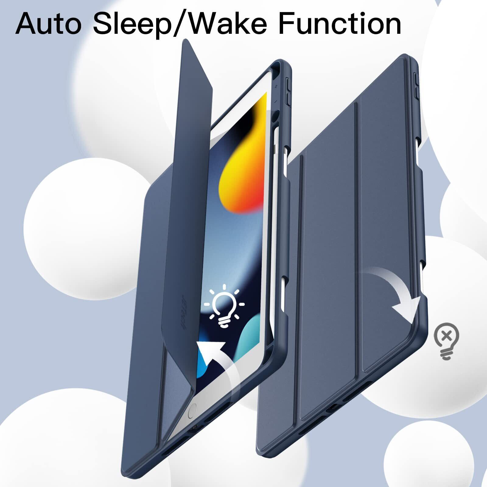 JETech iPad 10.2インチ ケース (2021/2020/2019モデル、第9/8/7世代用) Pencilホルダー付き ソフトTPUバック スリム保護カバー オートウェイクアップ/スリープ機能付き (ディープネイビー)