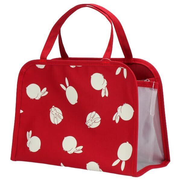 (Styleneo) スパバッグ 温泉バッグ ファスナー ポケット付き 濡れたものを入れても水が溜まりにくいメッシュ地の底面設計 スポーツクラブやプールにも便利 (狂言兎赤)