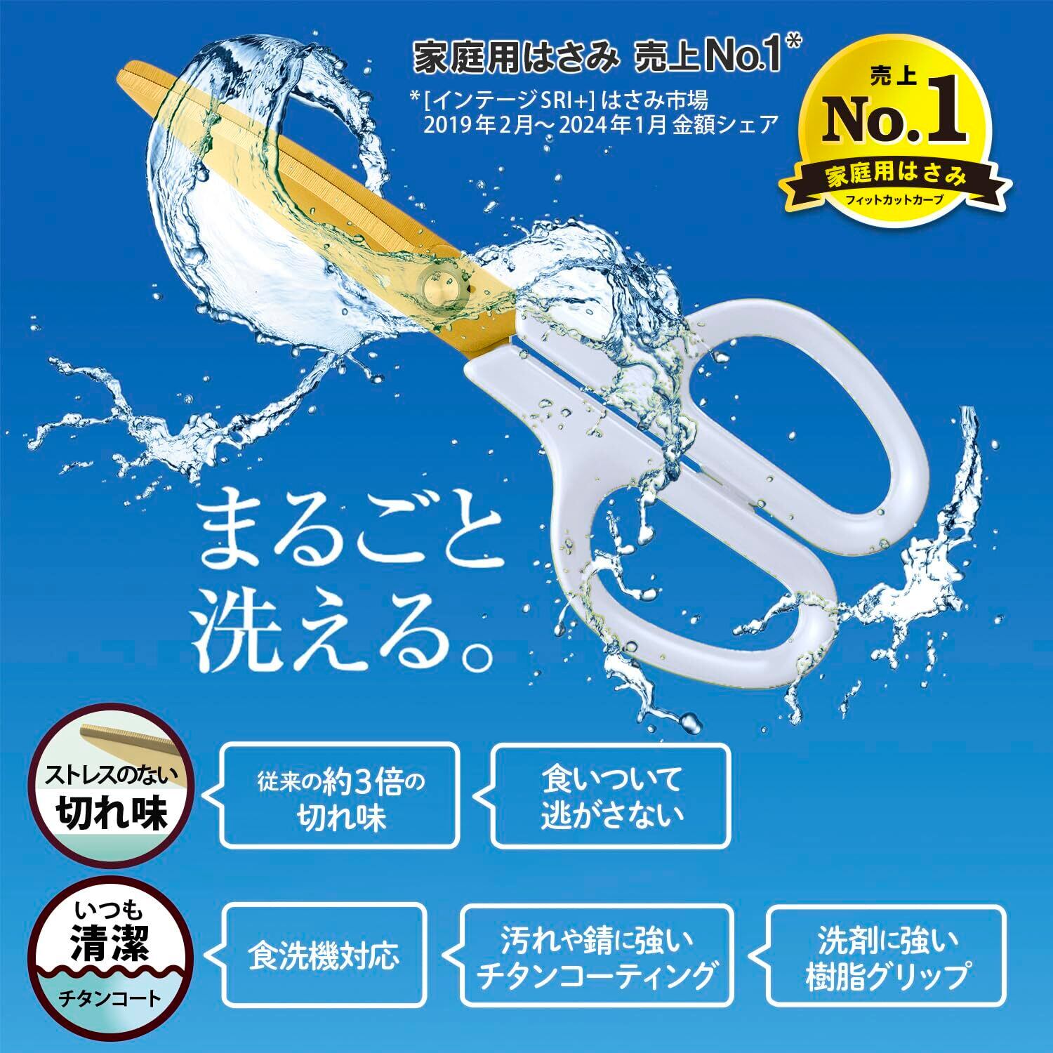 プラス キッチンバサミ ストレスのない切れ味 フィットカットカーブ 洗えるチタン マッシュルームホワイト 35-207
