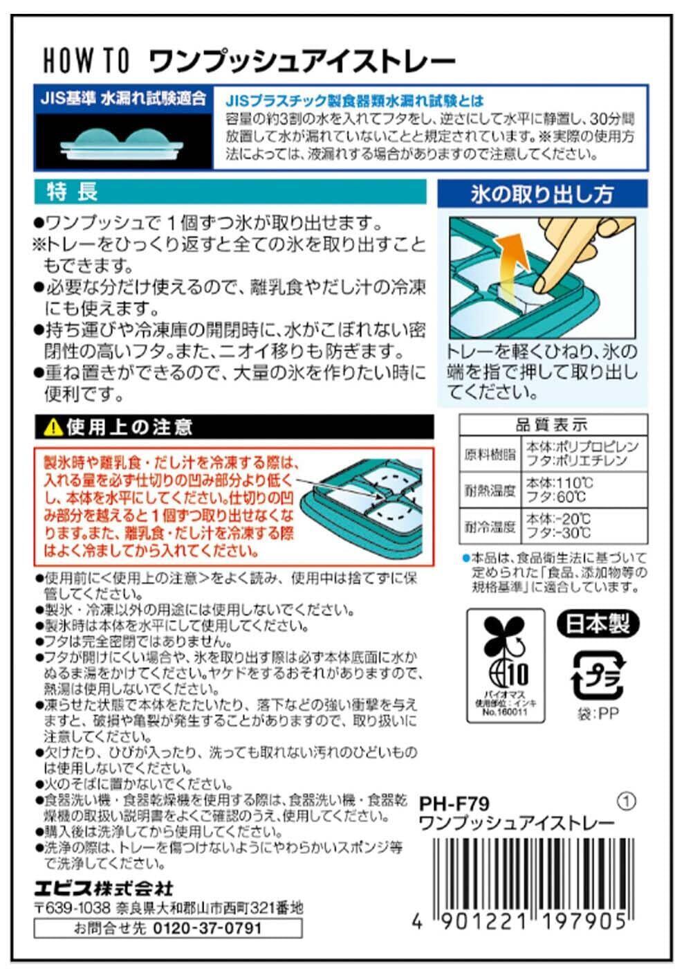氷数:10個 / 付属品:密閉ふた / 生産国:日本