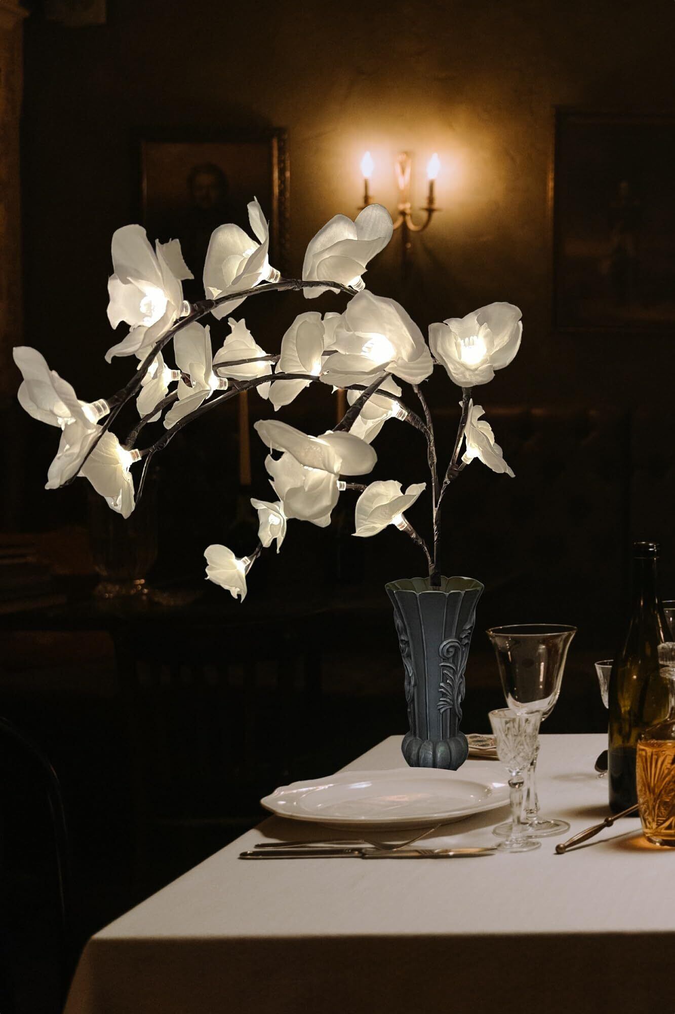 YRO 光る花 胡蝶蘭風 LEDライト 造花 夜の雰囲気 バーカウンター ディナー クリスマス テーブルライト (White)