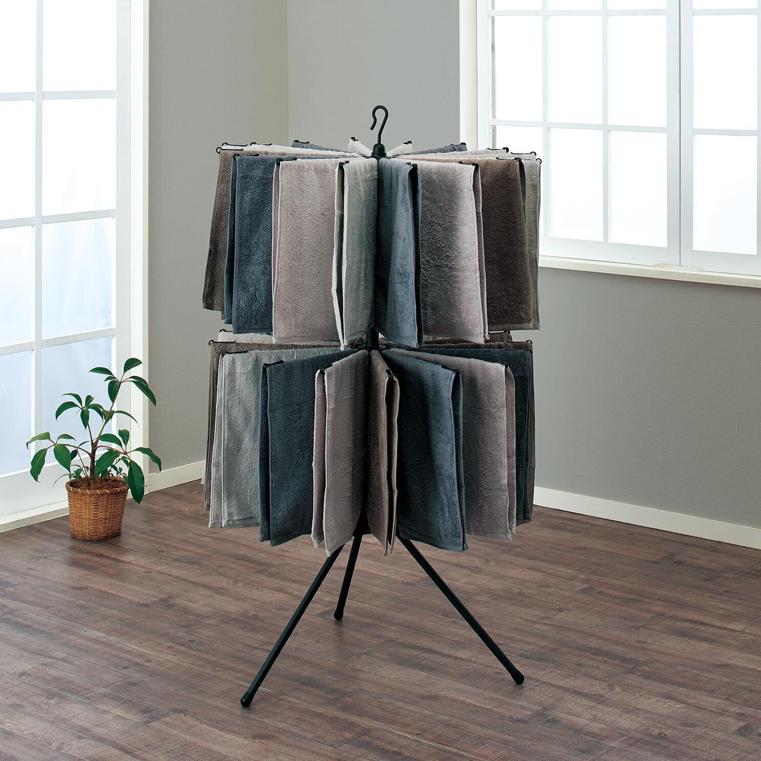 天馬(Tenma) どんなインテリアにもなじみやすいシックなデザインの物干し 洗濯 室内 部屋干し ブラック物干し パラソルスタンド2段 幅77×奥行77×高さ135cm PSBK-07 | yankees