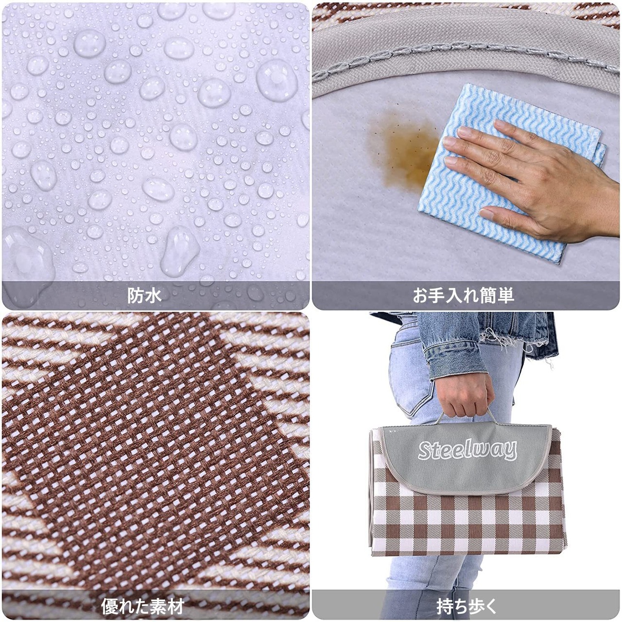 【お手入れ簡単】砂、草、汚れ、破片を振り落として、濡れた布で泥や汚れを簡単に拭き取って、空気乾燥または天日乾燥です。