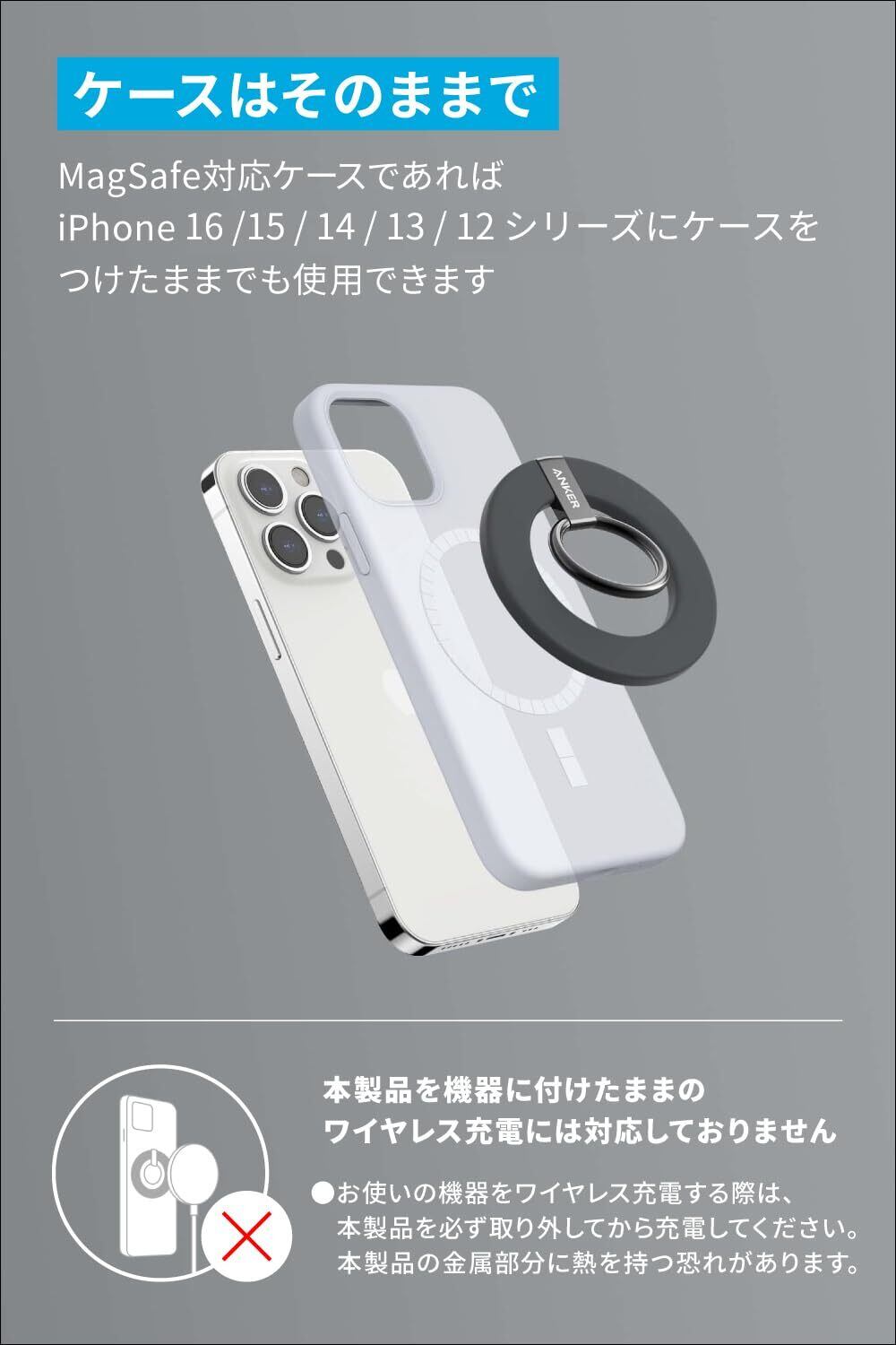 Anker 610 Magnetic Phone Grip (MagGo)(マグネット式スマホリング)【マグネット式/バンカーリング/スマホスタンド機能】MagSafe対応iPhoneシリーズ専用 (ブラック)