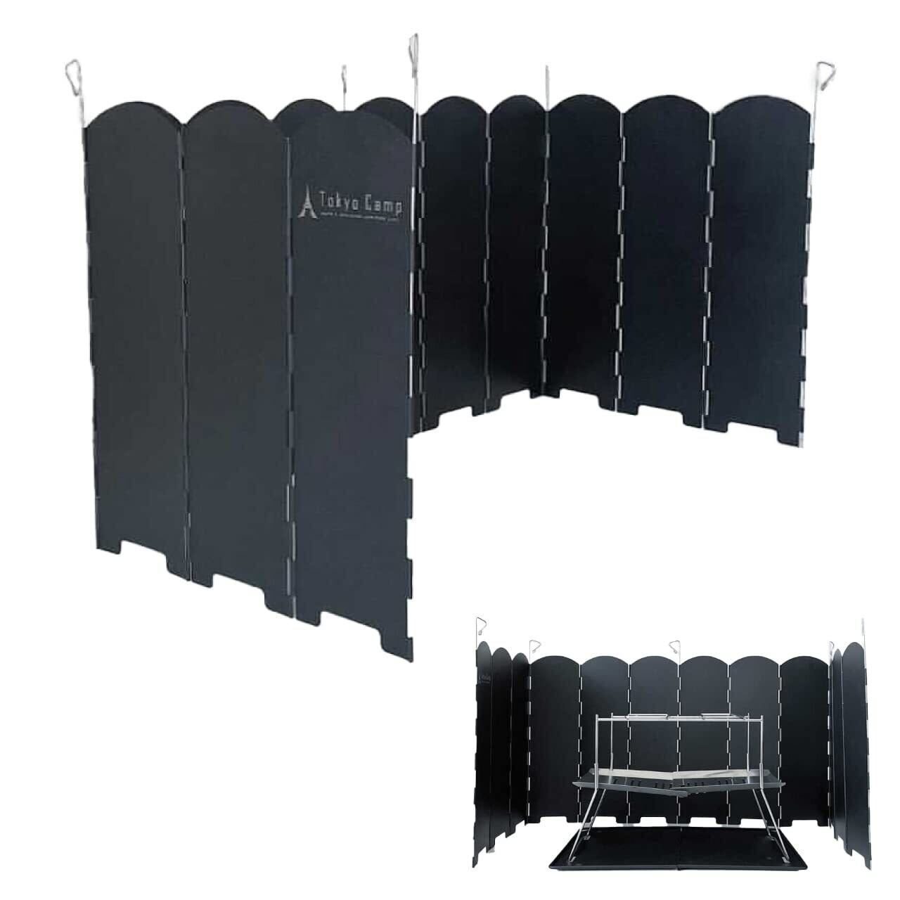 Tokyo Camp 焚き火台 ウインドスクリーン 他メーカー対応 風防 重厚感あるスチール製 風防板 キャンプ 焚き火 リフレクター 反射板 アウトドア 風よけ 黒 40cm 収納袋付き