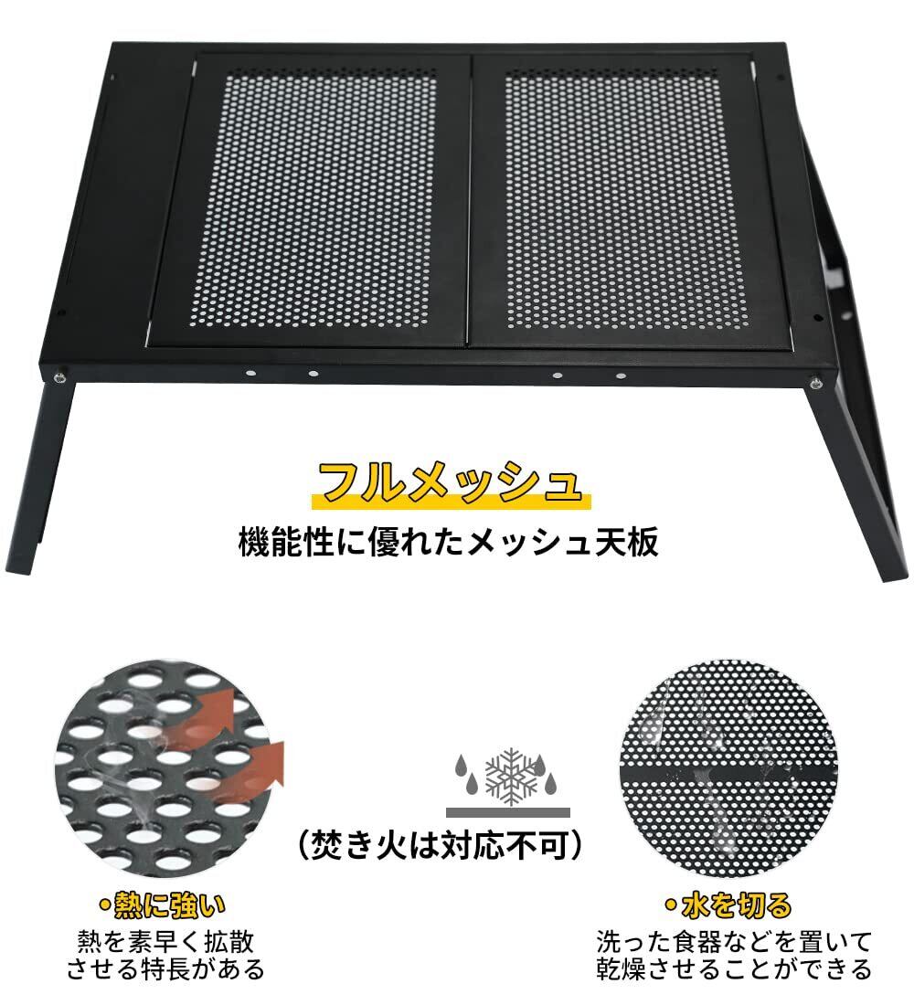機能性:フルメッシュ天板で、熱を素早く拡散させる特長があって、また、洗った食器などを置いて、乾燥させることもできて、機能性に優れたテーブルです。