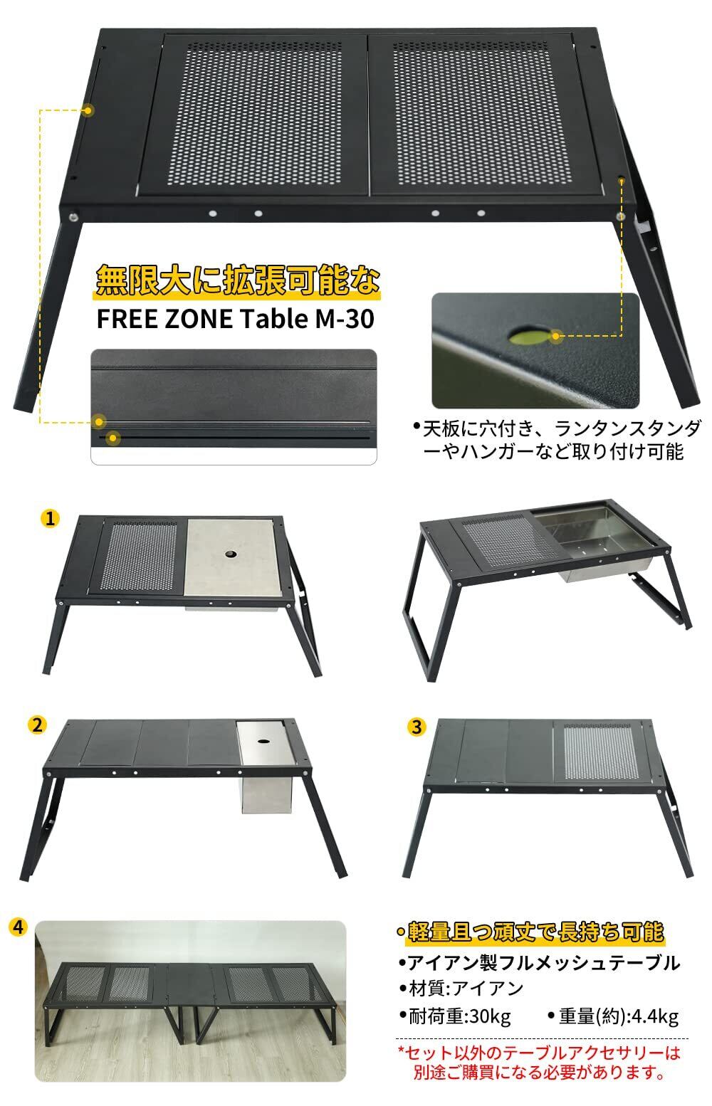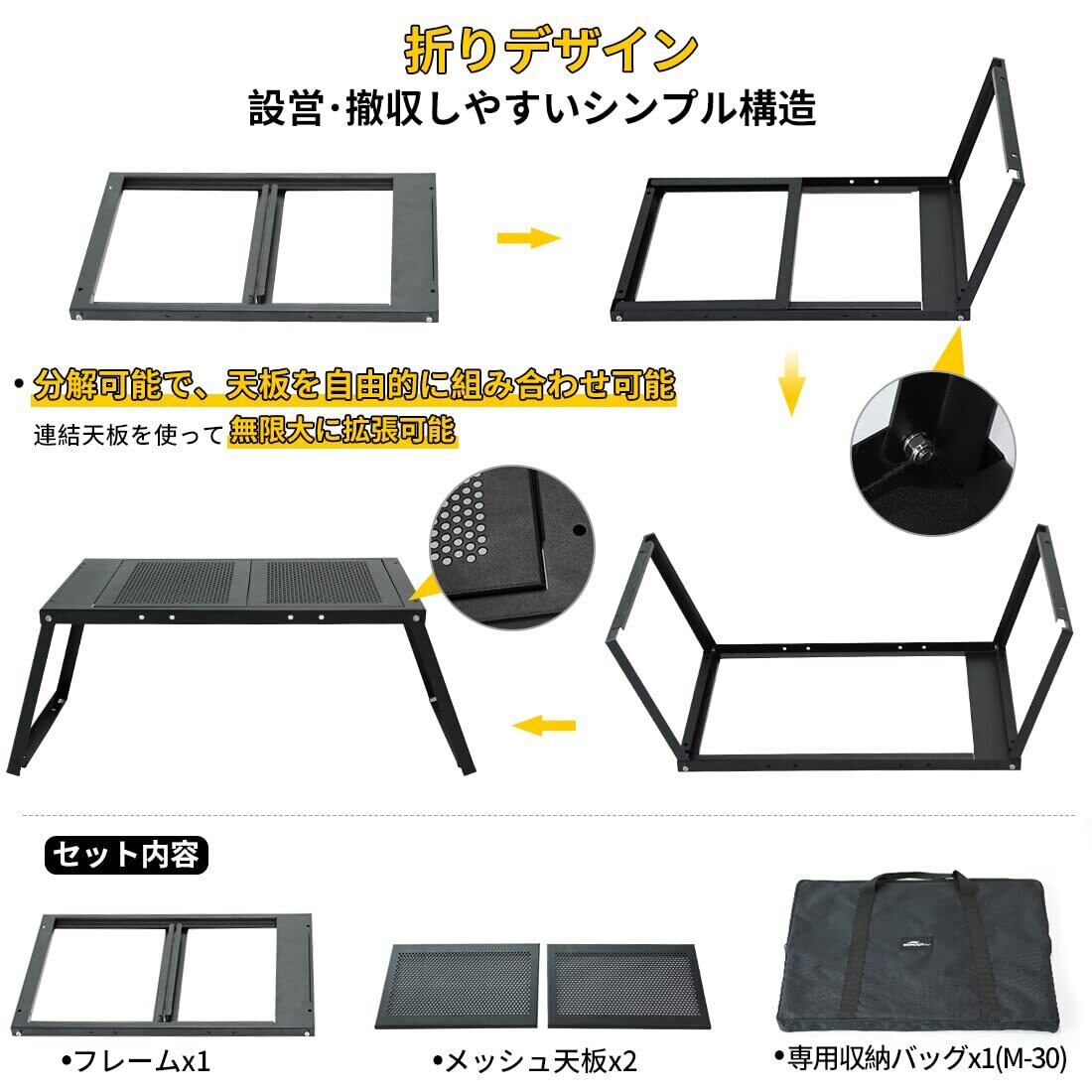 SoomloomテーブルFREE ZONE Table M-30フルメッシュ アイアン穴付き天板 折りたたみ式焚き火台 超軽量 無限拡張可能 キャンプ/アウトドア