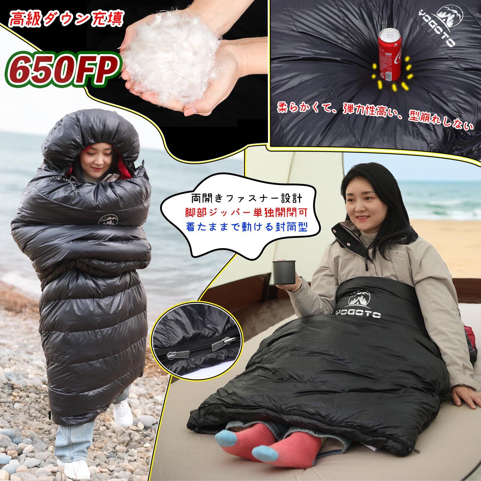 【YOGOTO】 ダウン シュラフ 冬用 寝袋 650FP 高級ダウン マミー型 コンパクト 車中泊り 登山 封筒型 スリーピングバック 防災 避難用 撥水 [ 最低使用温度 -15度 ]