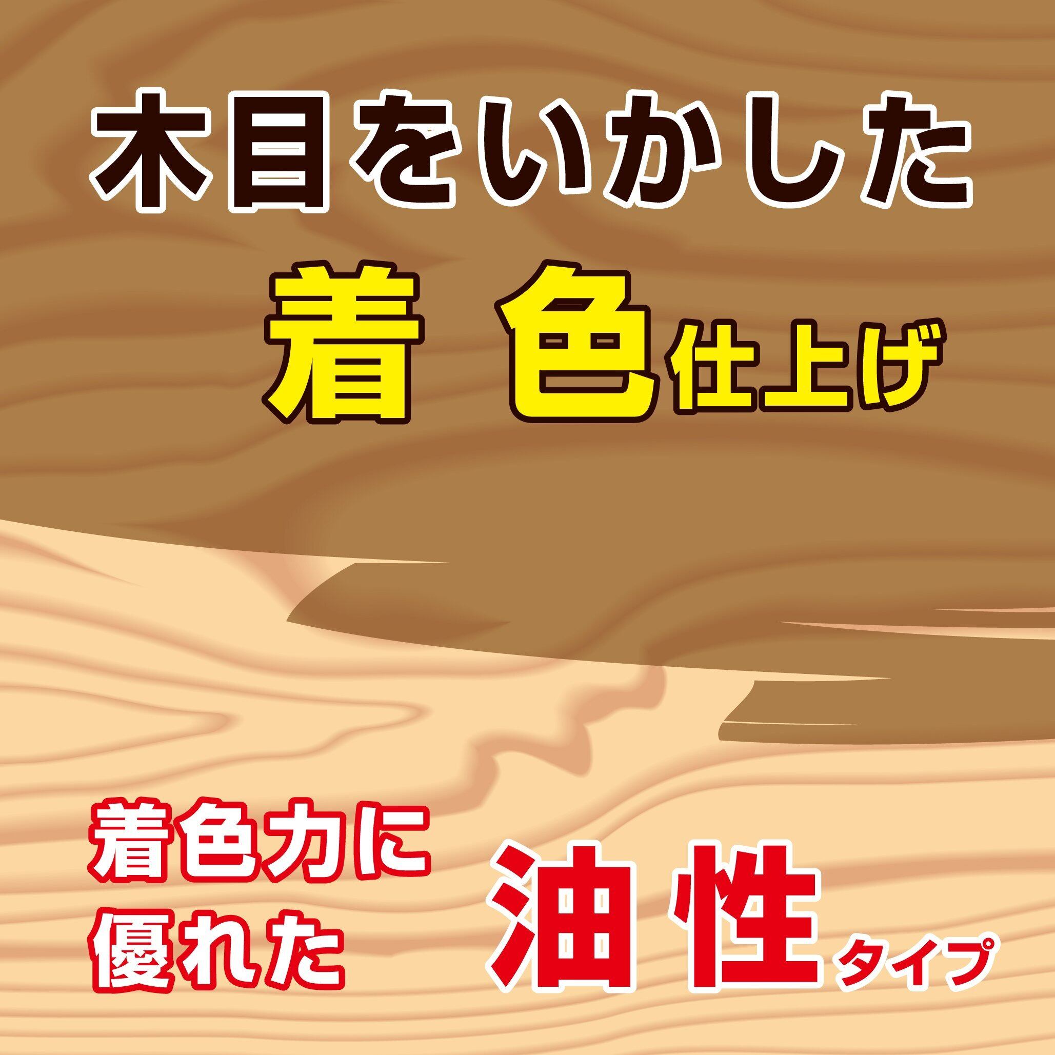【特長】 ■[鮮やかな着色仕上げ]木目の美しさを生かした鮮やかな着色仕上げが出来ます。 ■[屋外にも対応]屋外での使用も可能です。 ■[着色力&耐久性]着色力と耐久性に優れた油性着色剤です。【用途】 ■屋内外の未塗装の木部・木製品 家具 / 建具 / 木工品 など 【塗れないもの・注意事項】表示の用途以外には使用しないでください。 ■[吸い込まない素材]プリント合板 / デコラ板 など ■[常に水がかかる所]浴室 など ■[その他]高級家具 など【乾燥・塗重時間】【20℃】乾燥時間:約 1 時間 塗重時間:約 4 時間以上 【冬期】乾燥時間:約 2 時間 塗重時間:約 8 時間以上 【塗り面積(2回塗り)】100ml:平方メートル:約 1.5 ~ 1.8 m² タタミの広さ:約 1 枚分 300ml:平方メートル:約 4.5 ~ 5.4 m² タタミの広さ:約 3 枚分 0.7L:平方メートル:約 10 ~ 12 m² タタミの広さ:約 7 枚分 1.6L:平方メートル:約 24 ~ 28 m² タタミの広さ:約 17 枚分【塗装時の注意】 ■必ず用途に応じたニスを上塗りしてください。 ■旧塗膜がある場所は完全に取り除く必要があります。 ■[旧塗膜がある場合]旧塗膜がある場合は完全に取り除く必要があります。 ■[仕上りの色味について]容器の色表示は、中身の色と多少異なる場合があります。 また、木の種類・塗り回数によって変わります。 ■[状況によって異なります]乾燥時間、塗り面積の表示は気象条件、塗る素材、形状、塗り方、色、うすめ方などによって多少異なります。 ■[良くかき混ぜて]底に成分が沈んでいますので、必ず隅々までよくかき混ぜてからご使用ください。【うすめ液・用具の洗浄】 ペイントうすめ液 (薄めずこのままご使用ください。)
