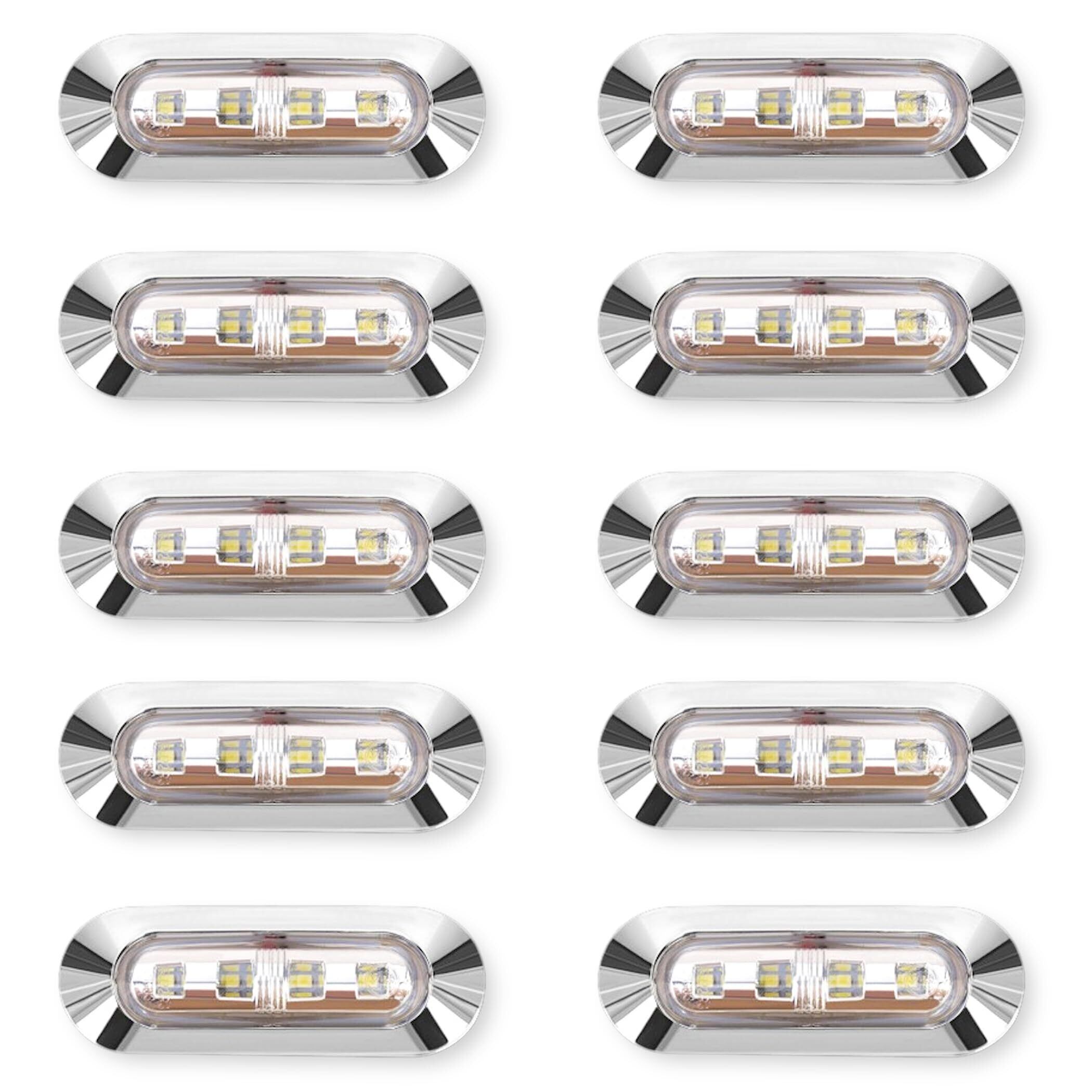 Lezalic LED 4連 カラーレンズ 10個セット 12V 24V 高輝度 小型 ランプ サイド マーカー 防水型 トラック メッキ カスタム (ホワイト)