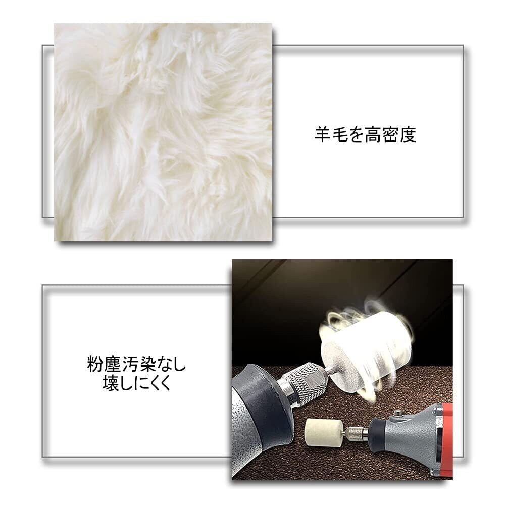 【材質】ウール(研磨ヘッド)+金属(シャフト)。高品質羊毛を圧縮し、高密度で耐久性を高めた。