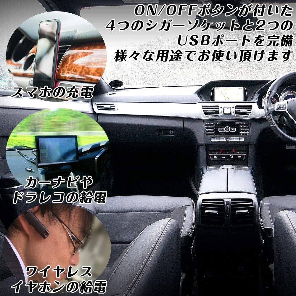 【シガーソケット合計電力】120w コネクター:シガーソケット×1 ポート:シガーソケットポート×4、USB2.0×2