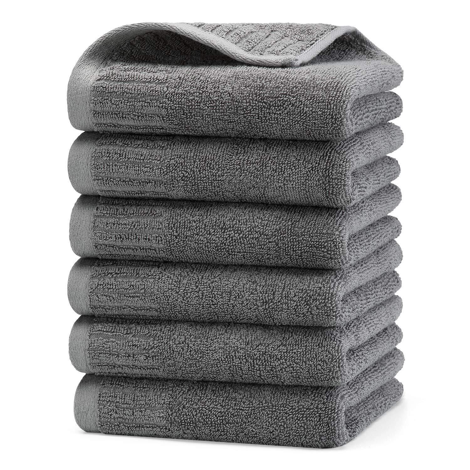 TMVOK フェイスタオル グレー 無地 タオル おしゃれ 北欧風 綿100% 6枚セット 吸水速乾 35*70cm 厚手 大判 抗菌防臭 家庭用、ホテル、業務用、スポーツなどにも最適 四季通用 グレー6枚 | yankees