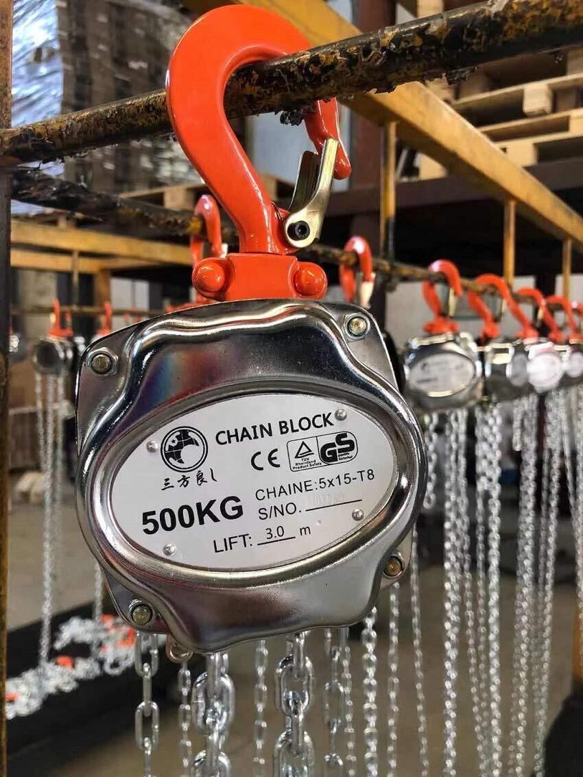 三方良し 軽量小型 チェーンブロック0.5ton チェーン3m シルバー色 チェーンホイスト 0.5t 3m 500kg 0.5トン ホイストクレーン・CE・GS規格認証済み製品・荷締め 荷締め機 | yankees