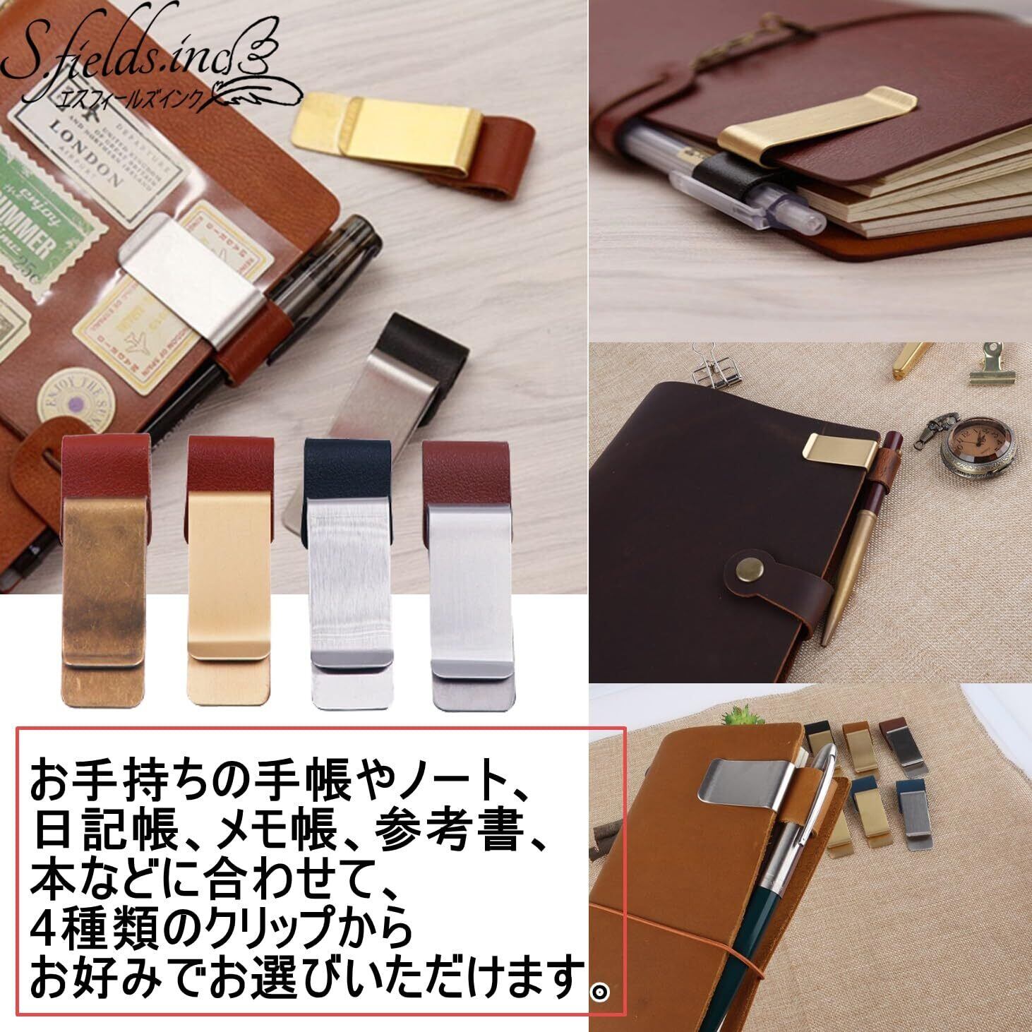 S.fields.inc ペンホルダー 手帳用 ペンクリップ ペンループ 4色4個セット 後付け ノート 日記 汎用