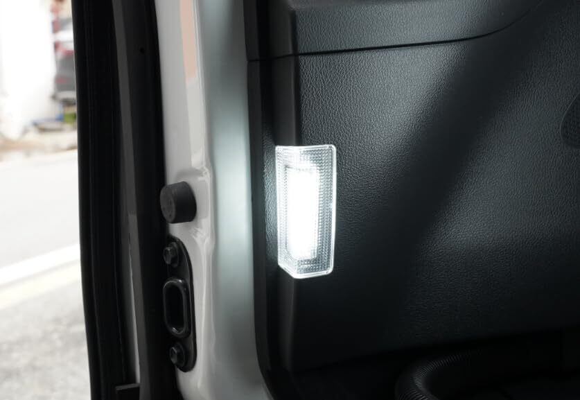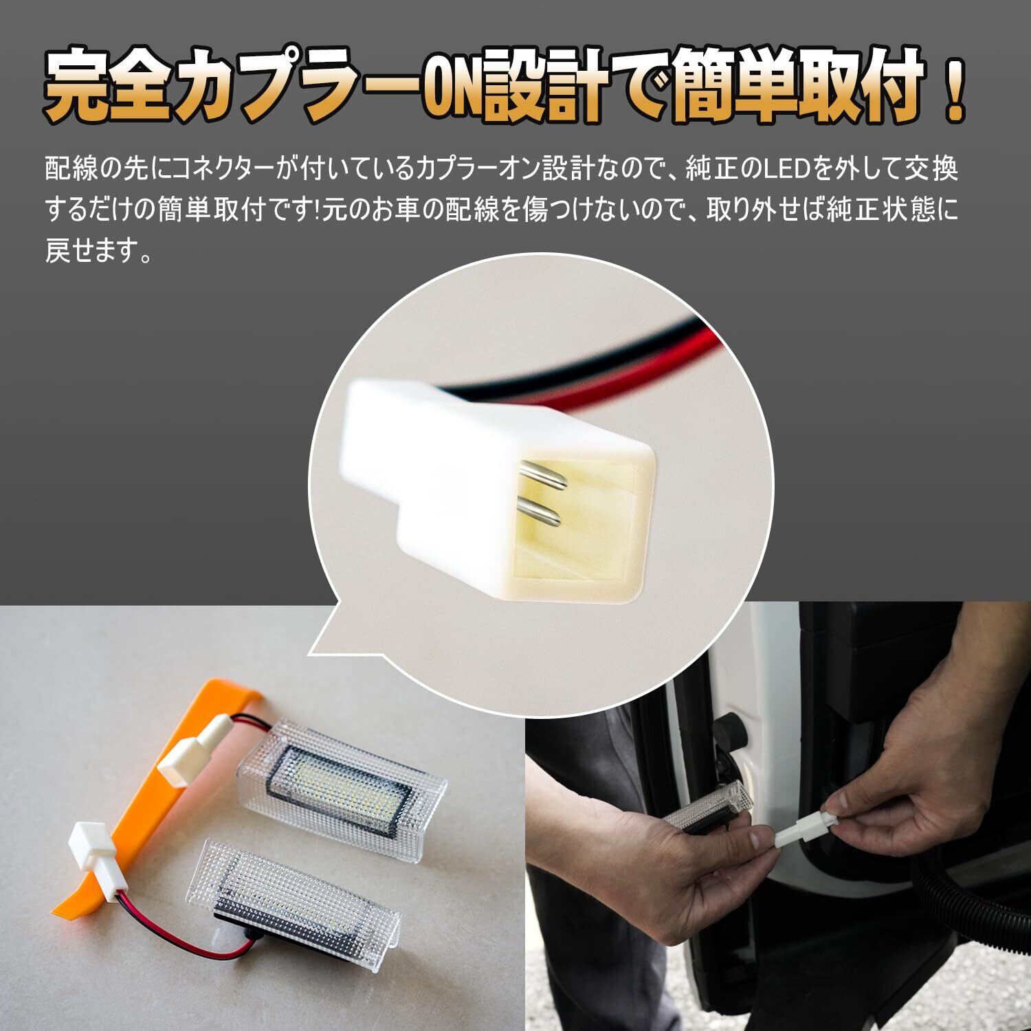 【車種専用設計】車種専用設計なので純正のLEDを外して交換するだけの簡単取付です。純正の光より明るく澄み切った純白色の光に変えます。純正ランプをはるかに超える明るさを実現しました。ドアを開けるときに、足元をより明るく照らします。