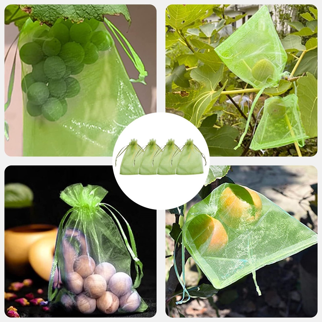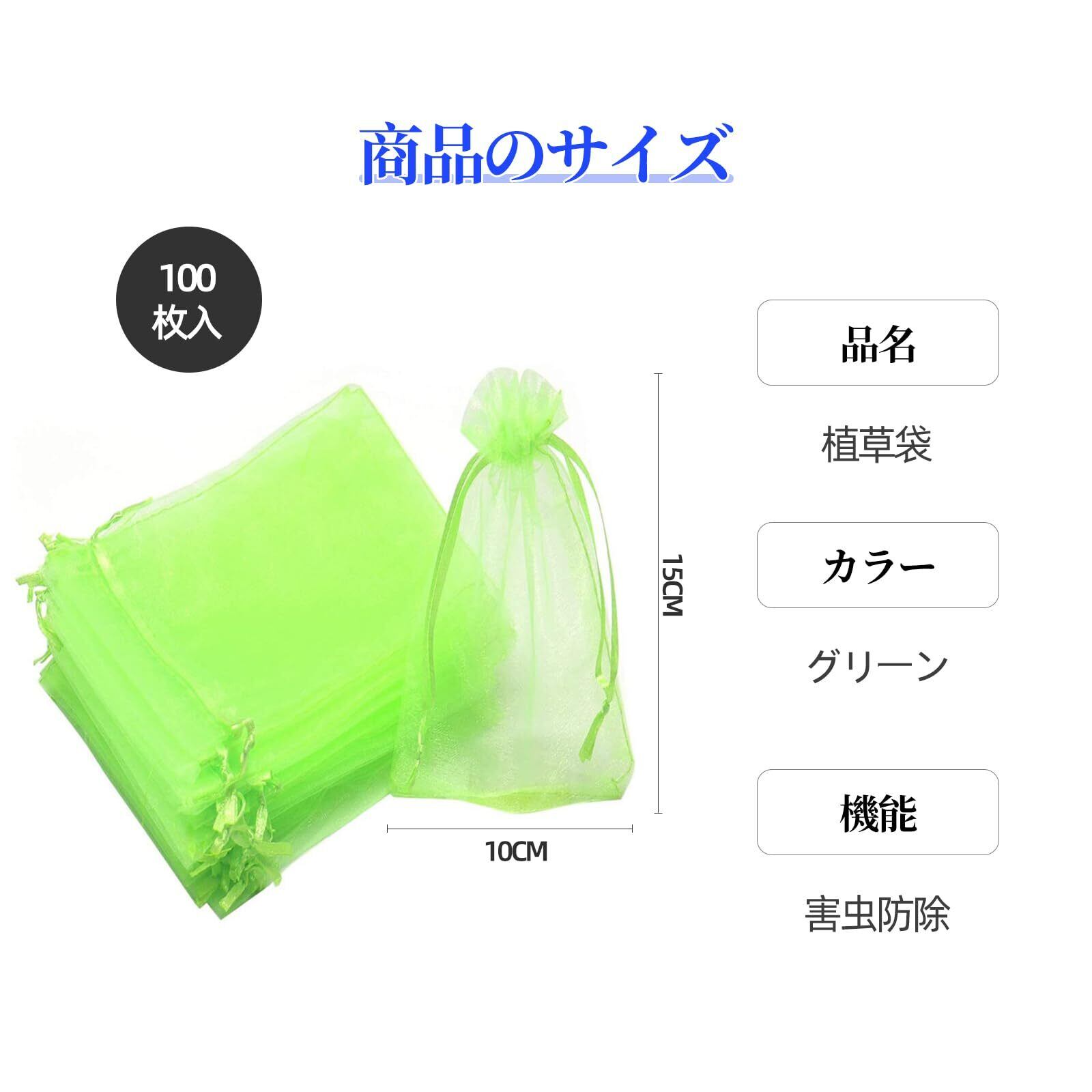 【大容量50点セット】:果物保護バッグは大容量100点セット、サイズ 10*15cm、色はフルーティーグリーン、オールシーズン使用可能。巾着タイプなので、しっかり閉じることができます。開閉にも非常に便利です。これを付けてからは被害がなくなりました。