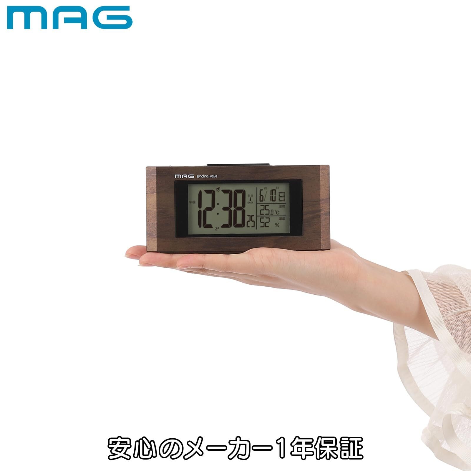 MAG(マグ) 目覚まし時計 置き時計 デジタル 電波時計 温度計 湿度計 温湿度計 カレンダー 電子音 アラーム スヌーズ ライト 木目調 ブラウン ウッドラインT-743 BR-Z ノア精密