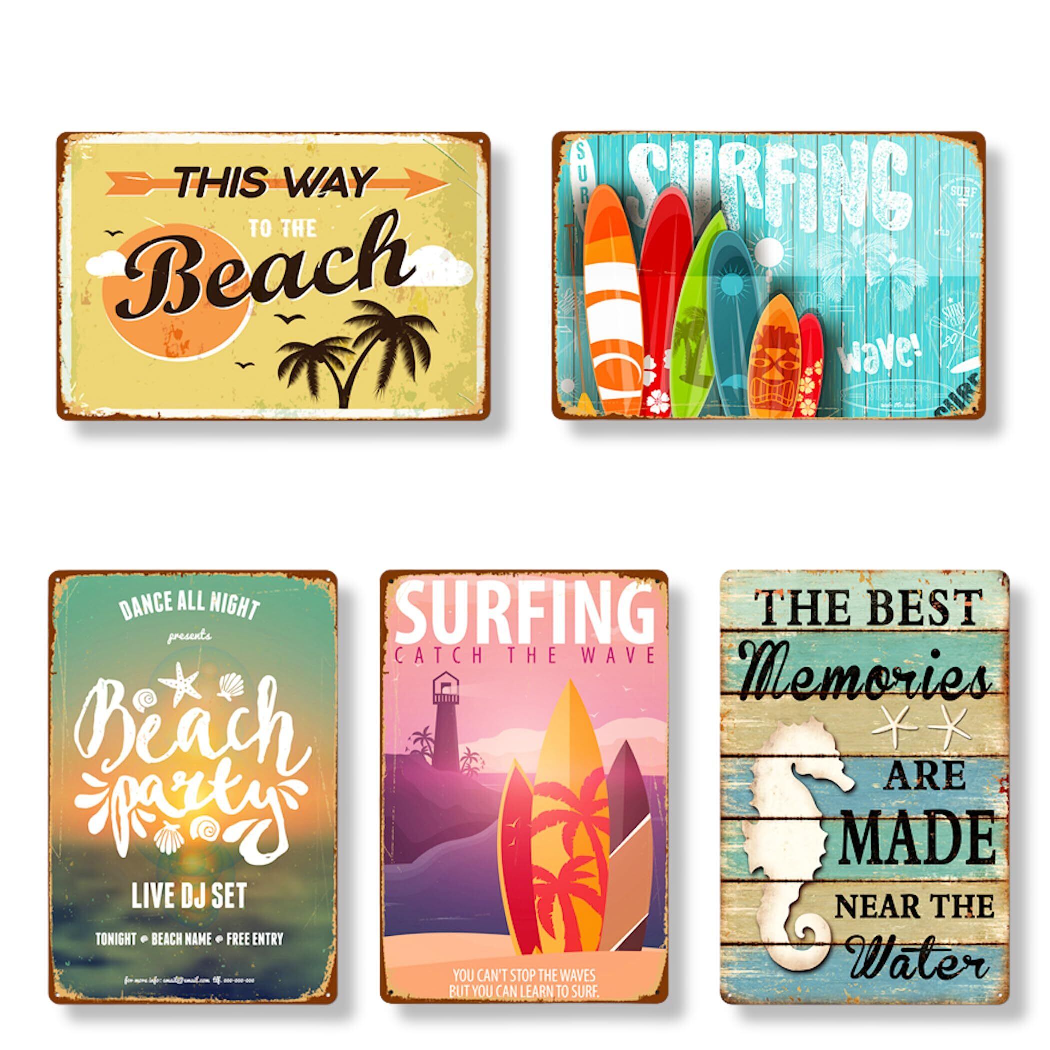 Lezalic ブリキ 看板 サーフ ビーチ 壁飾り アメリカン プレート インテリア レトロ 雑貨 ヴィンテージ風 アンティーク (SURF1)