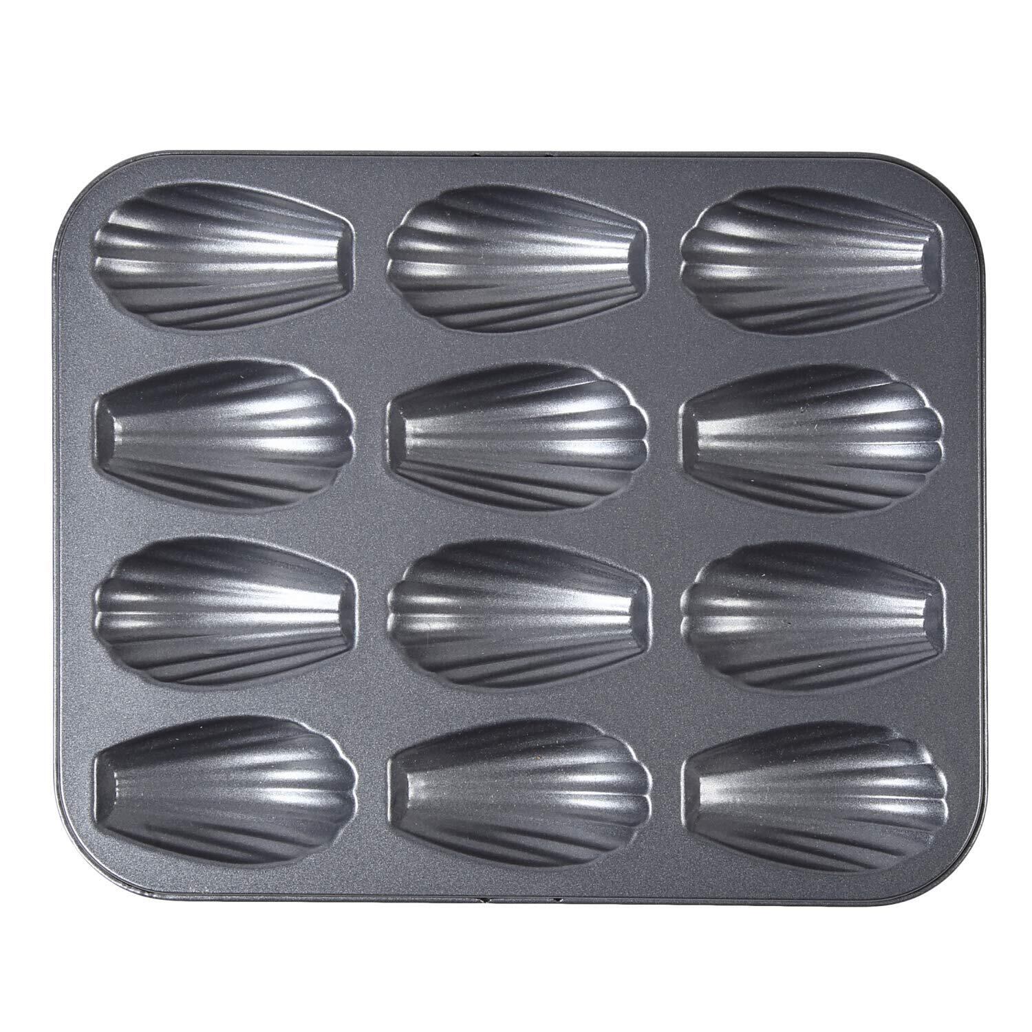 かわいらしいマドレーヌが焼けます。型から抜きやすくキレイに仕上がります。ベースは鉄なので蓄熱率が 高くとてもキレイな焼色がつきますよ一度に12個も焼けるので、気軽に焼くことができます。