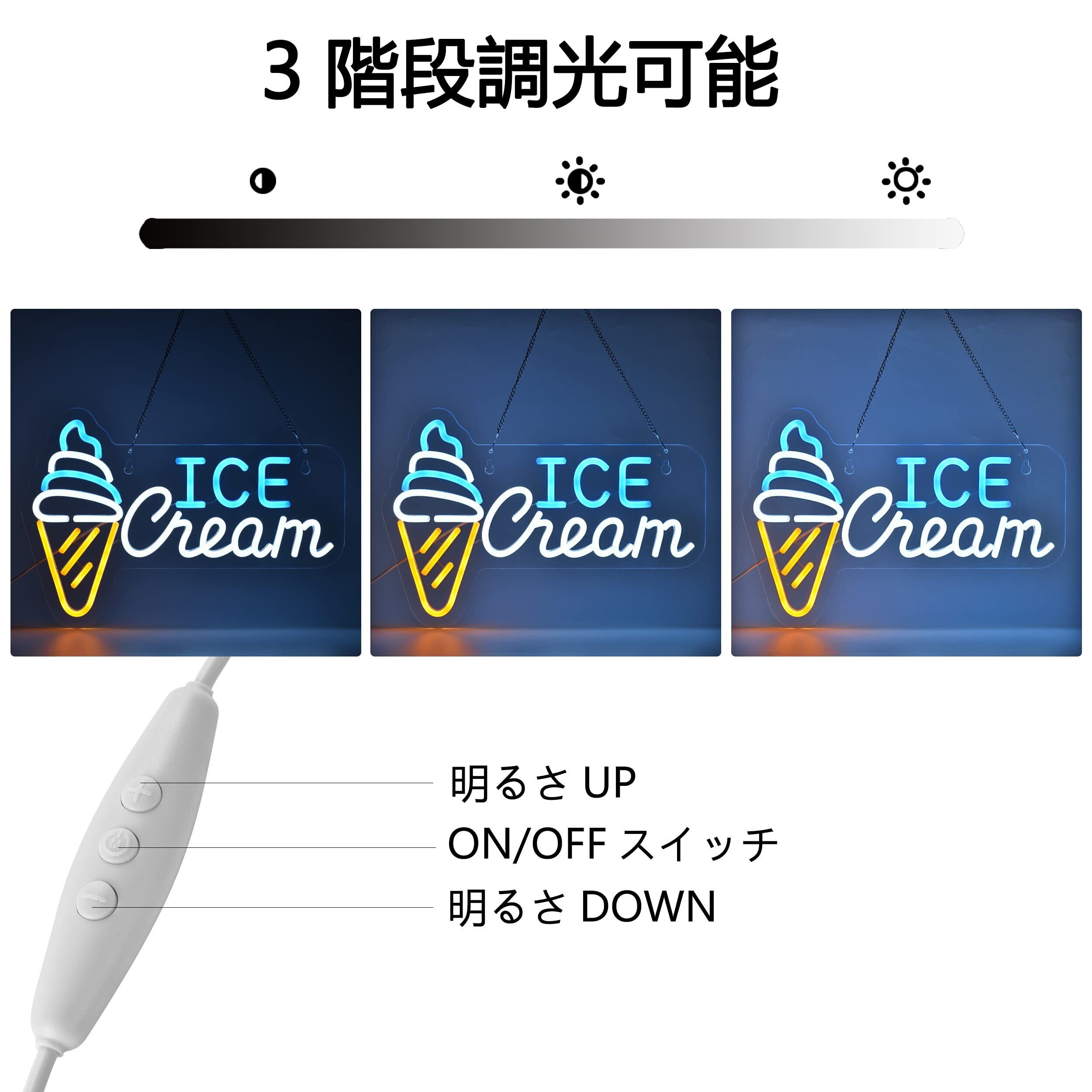 JOMOBUTY Ice Creamネオンサイン LEDアイスクリームネオンライト アイスクリーム屋さんお店看板 店舗インテリア レストラン バー 居酒屋 飲食店 喫茶店用サイン パーティー装飾 イベント飾り OPENネオン管ライト USBパワード41*28cm | yankees