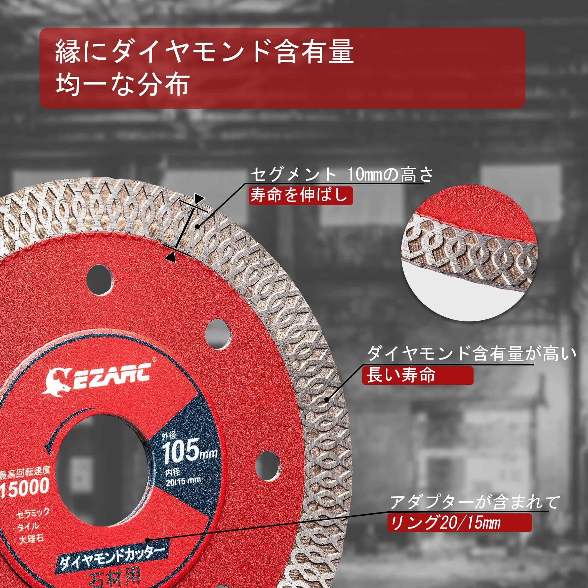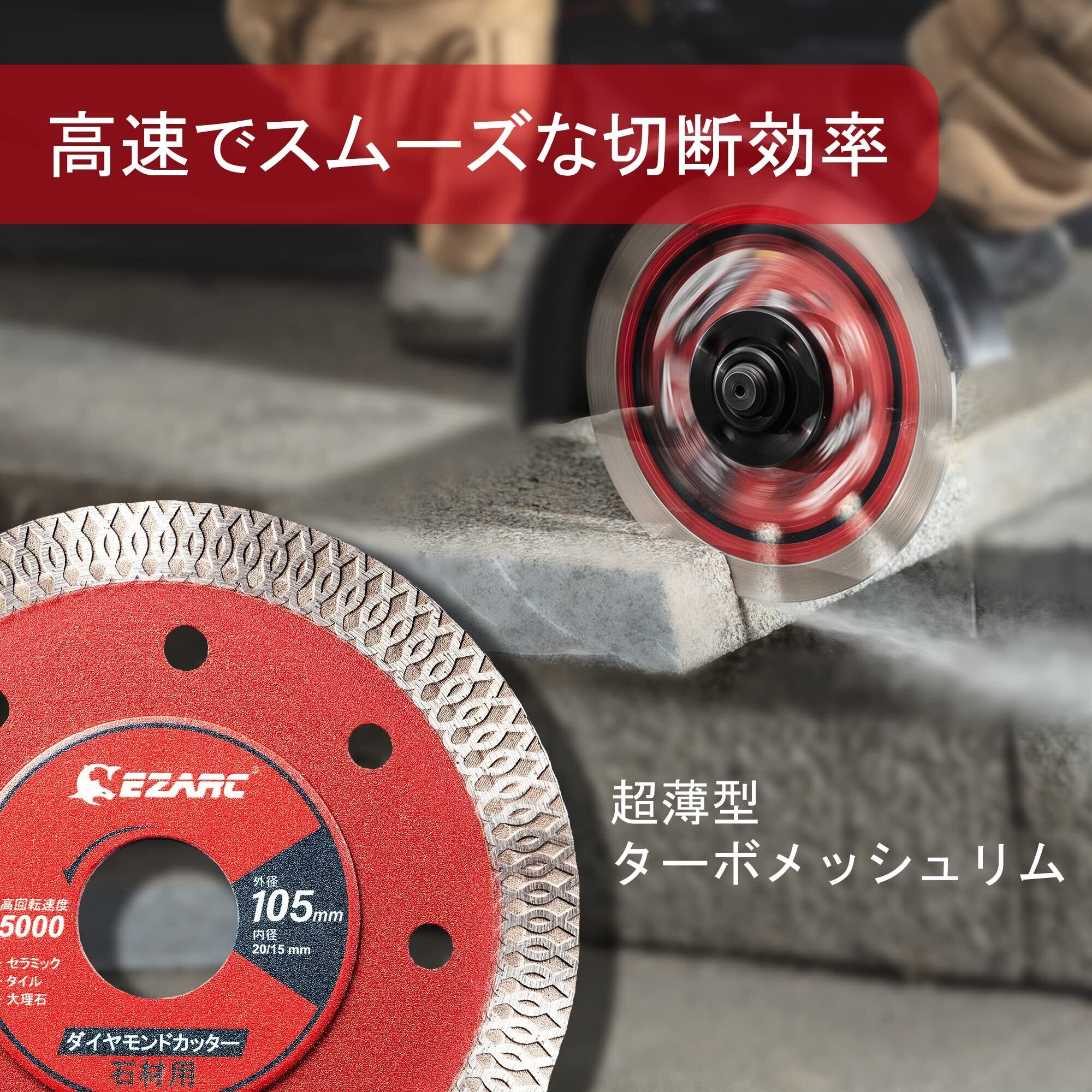 EZARC 薄型ダイヤモンドカッター 105mm 乾式 湿式 ダイヤモンドブレード 薄刃 ターボ 切断 高速研削 セラミック タイル 花崗岩 切断ブレード 2枚入れ