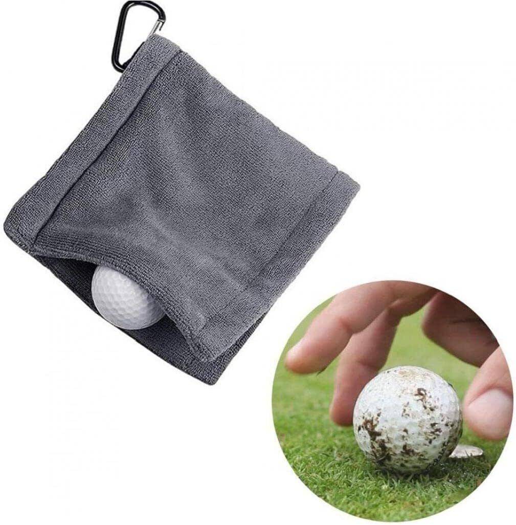 ゴルフ タオル ゴルフボールクリーナー ゴルフ用清潔具 カラビナと 便利 防水 キーホルダーバックル 14*14cm 2個入り ゴルフボールクリーニングタオル(黒とグレーが一つずつです) | yankees