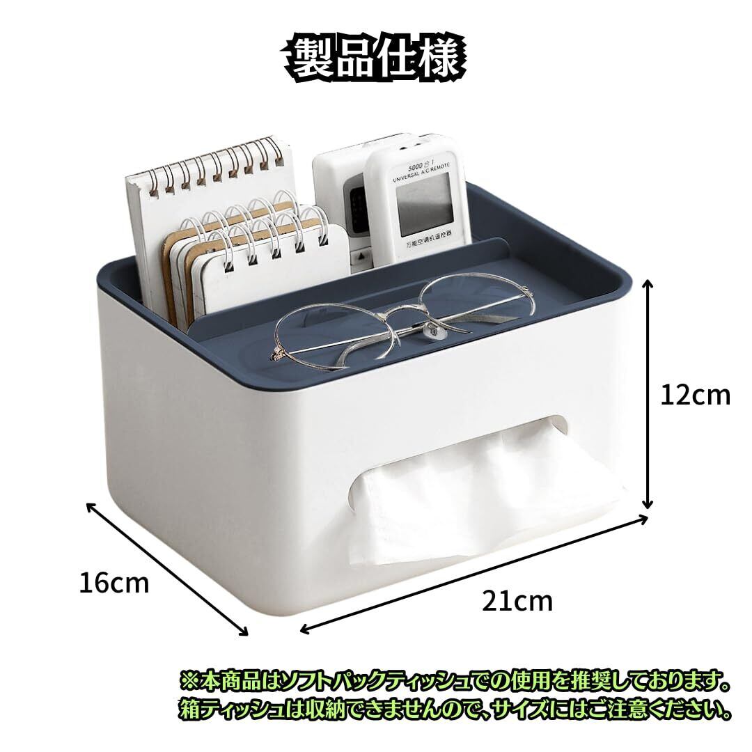 Charmoon ティッシュケース 小物入れ スマホ リモコン ラック 北欧 シンプル おしゃれ 卓上 収納 (ネイビー/ホワイト)