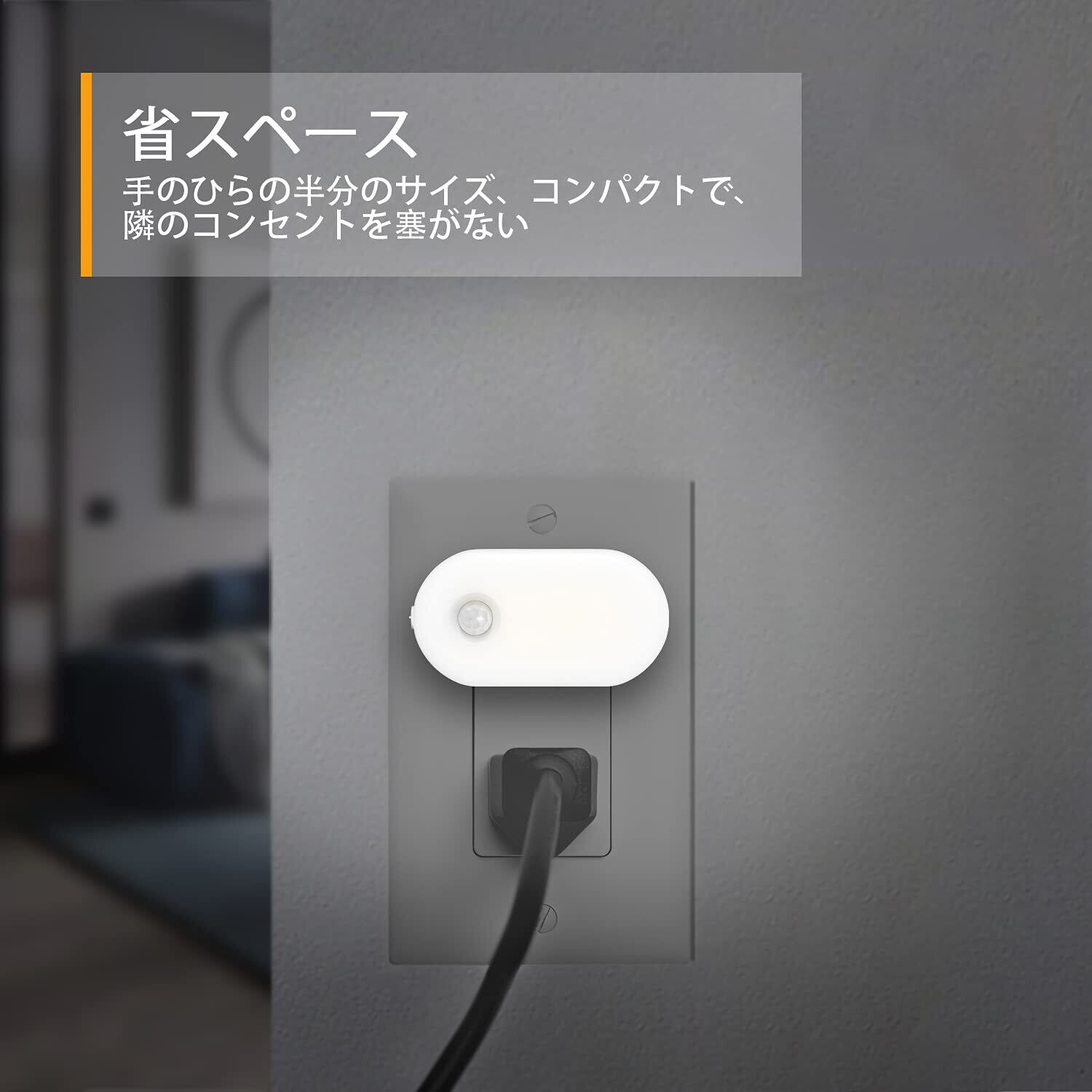 【コンパクトで設置便利】センサーライトはコンセント式なので、コンセントに差し込むだけで、すぐにご使用いただけます。女性の手のひらにすっぽり収まるサイズで、下のコンセントを塞がないです。かつ、超軽量なため、取り外しも便利です。※ご注意:複数個設置する場合は、最低1.5メートルほど離して設置することが推奨されています。また、高出力の電気製品の近所や高温の場所では使用しないようにしてください。