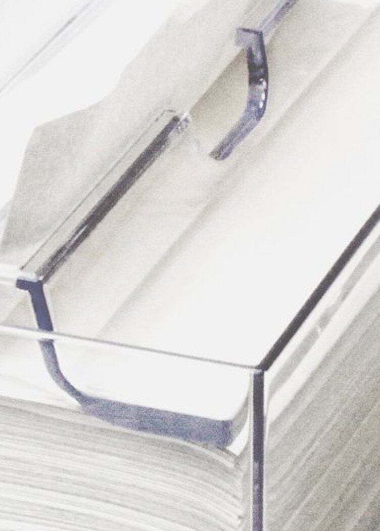 ペーパータオルがまだ残っている時でも継ぎ足ししやすいでしょう。どの角度からでも残量が分かるきれいなクリアケースです。