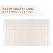 【安全安心】本製品は吸盤で安定性抜群!表面が滑り防止のための凸凹加工が施してあり、乗っても滑りにくくなっています。裏面が全面に吸盤で床としっかり吸着固定、ズルズル動いたりしません。耐熱温度が70℃まで、お湯を張った浴槽でも安心して使えます。