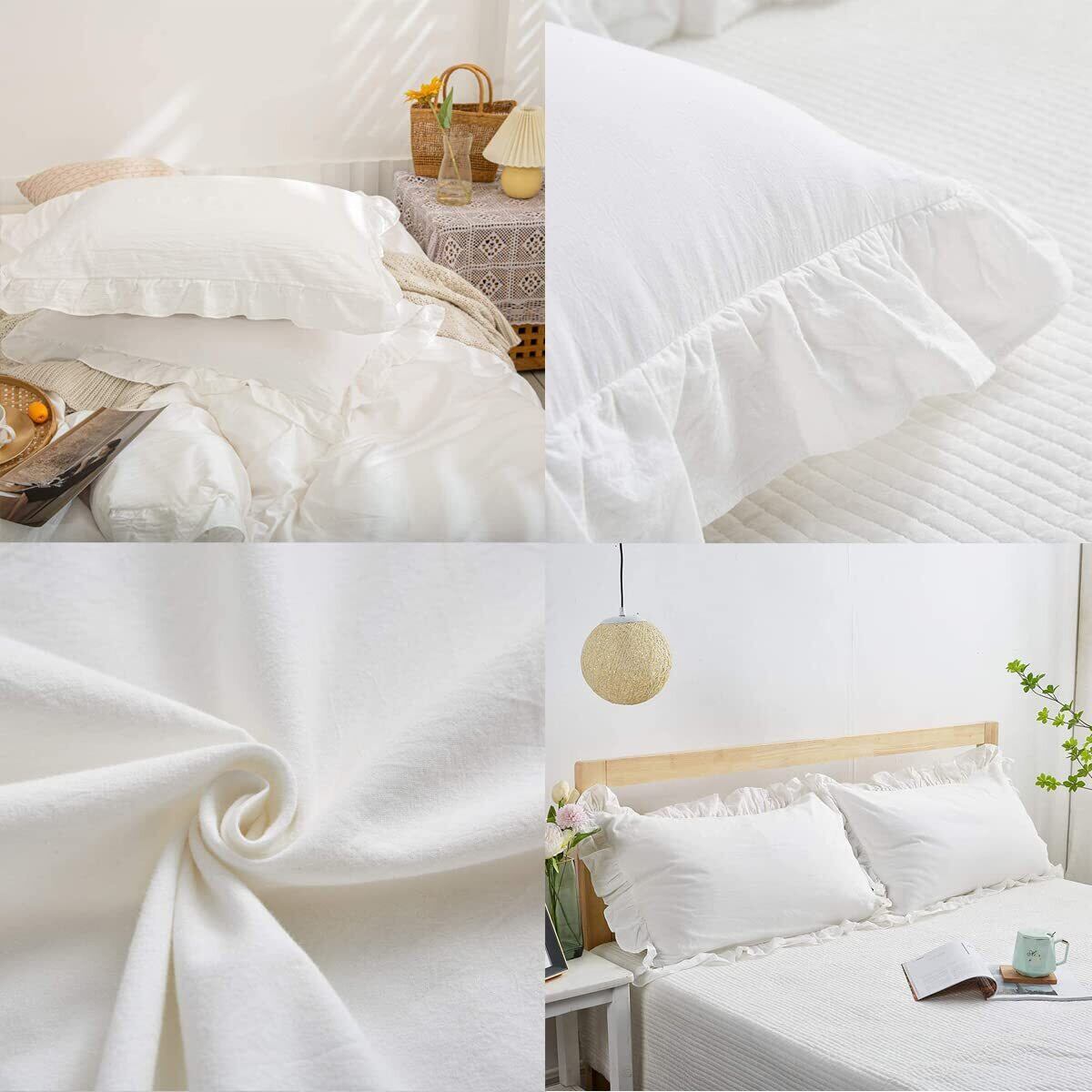 Forhomelife 枕カバー 2枚セット ピローケース 43x63 フリル 封筒式 まくらかばー ピーチスキン加工 抗菌 防臭 洗える かわいい ホワイト