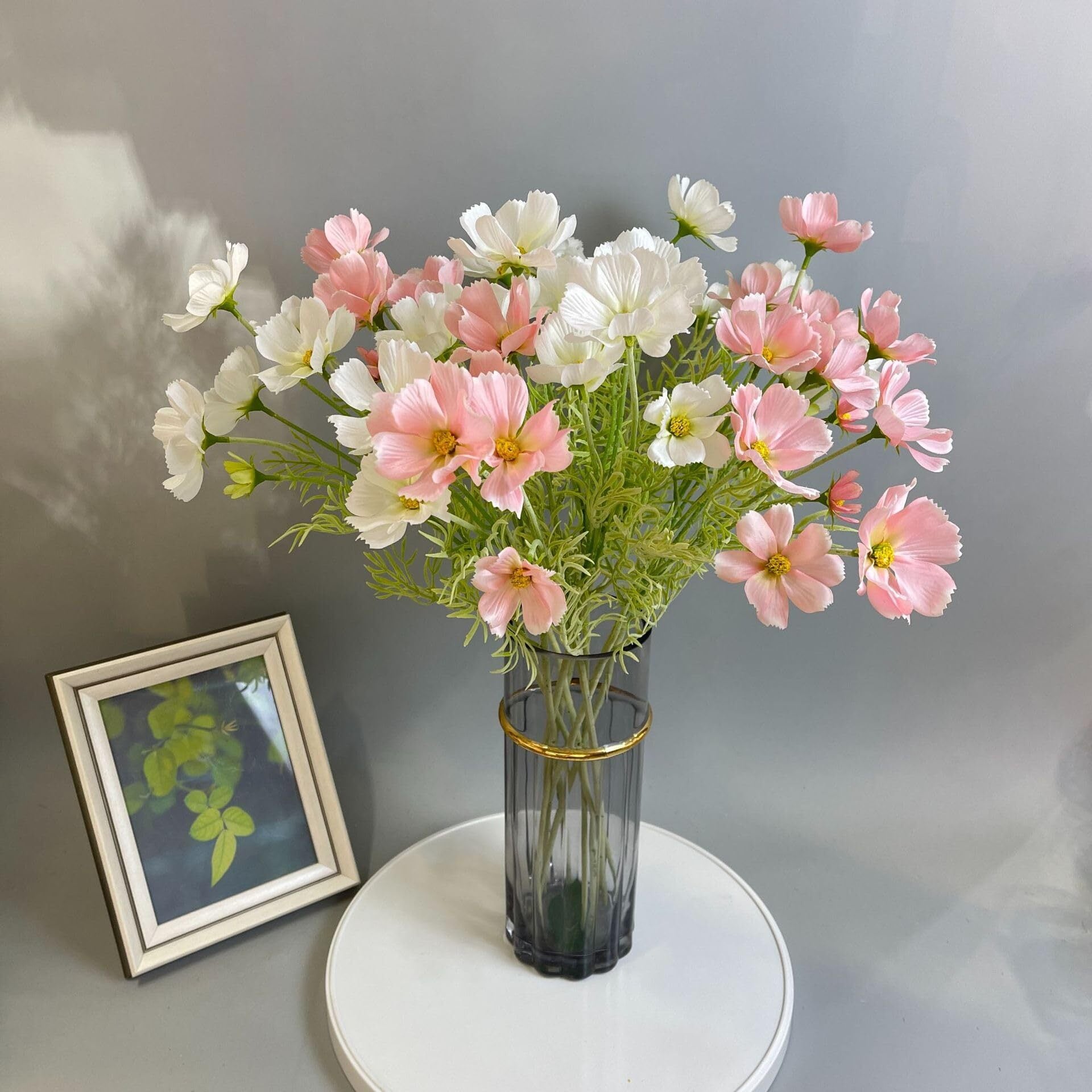 コスモス花束を花瓶に入れて、玄関、リビングルーム、ベッドルーム、バスルームなどに置くと、華やかな空間を演出します。