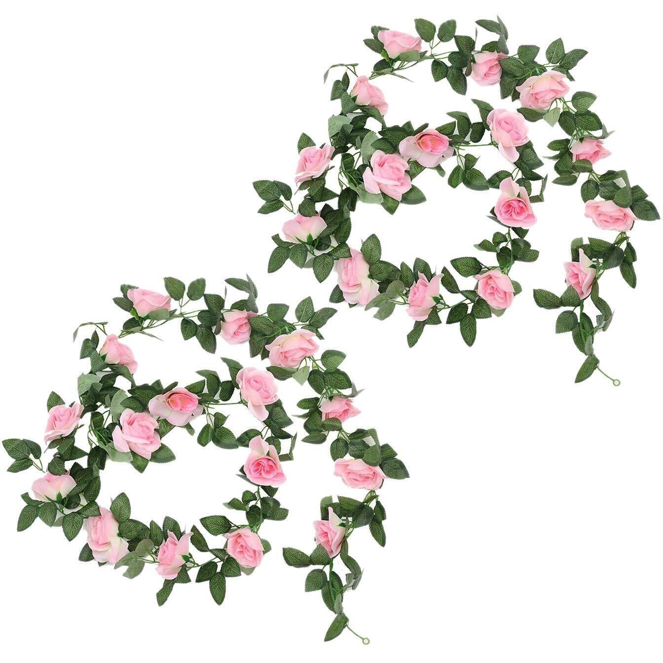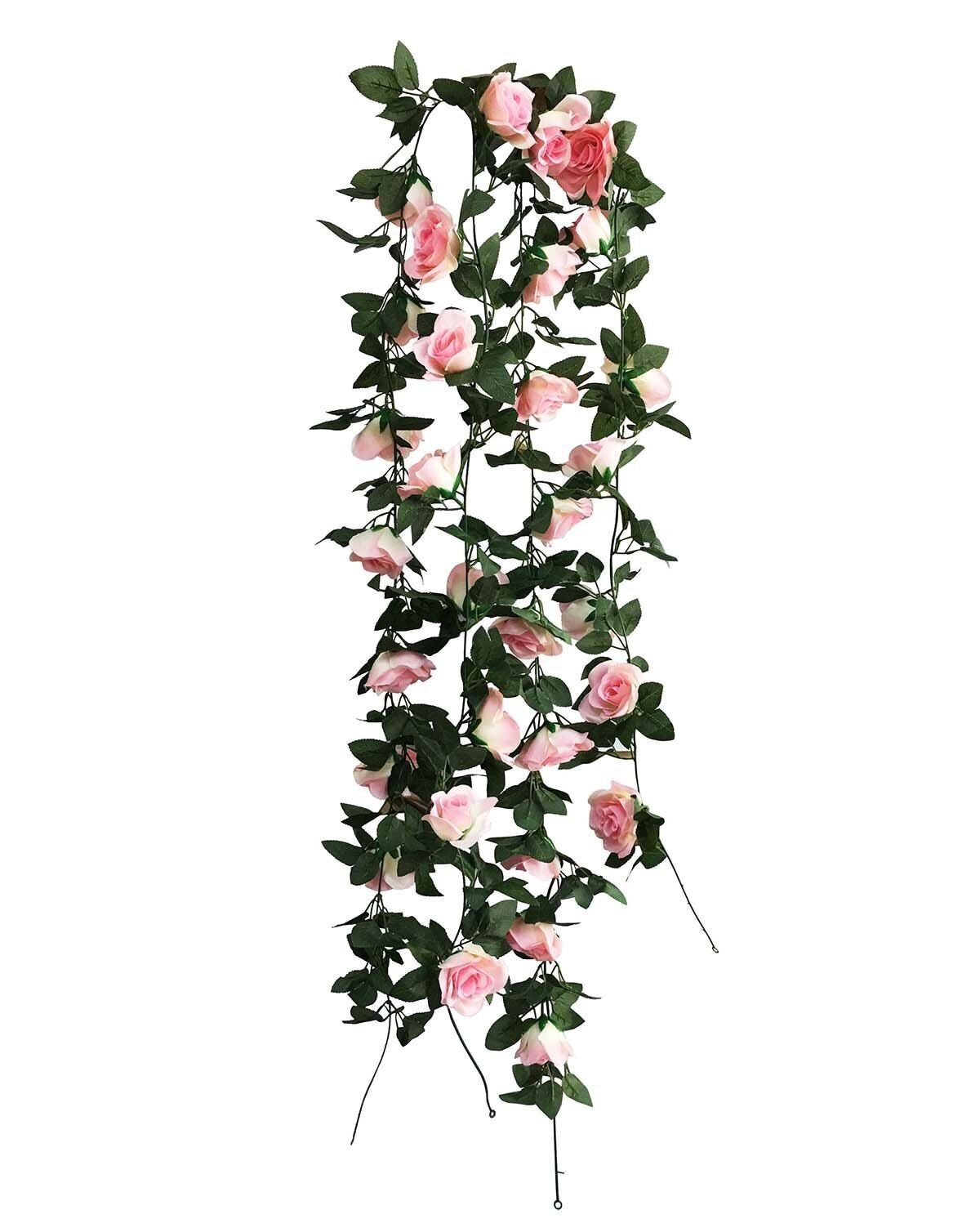 2本入り 壁掛け造花 人工観葉植物 シルク造花 人工 ローズ藤 吊り下げ インテリア 結婚式 パーティー飾り スーパー/喫茶店/家庭用 花輪 (ピンク)