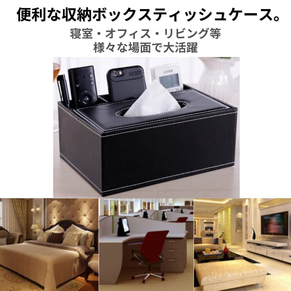 便利な収納ボックス付きティッシュケースです。リモコンラックや化粧品、文房具、メガネ等収納可能です。寝室、子供部屋、ドレッサー、キッチン、リビング、車内、オフィス、場所を選ばず様々なシーンで大活躍です。