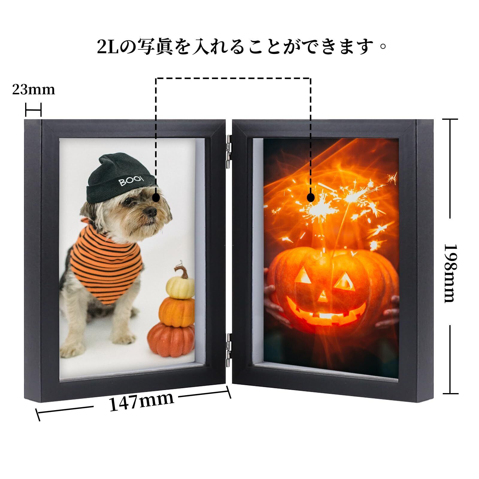 フォトフレーム 2面 2L 額縁 写真立て おしゃれ 写真フレーム 卓上 インテリア プレゼント 誕生日 退職 結婚祝い ブラック