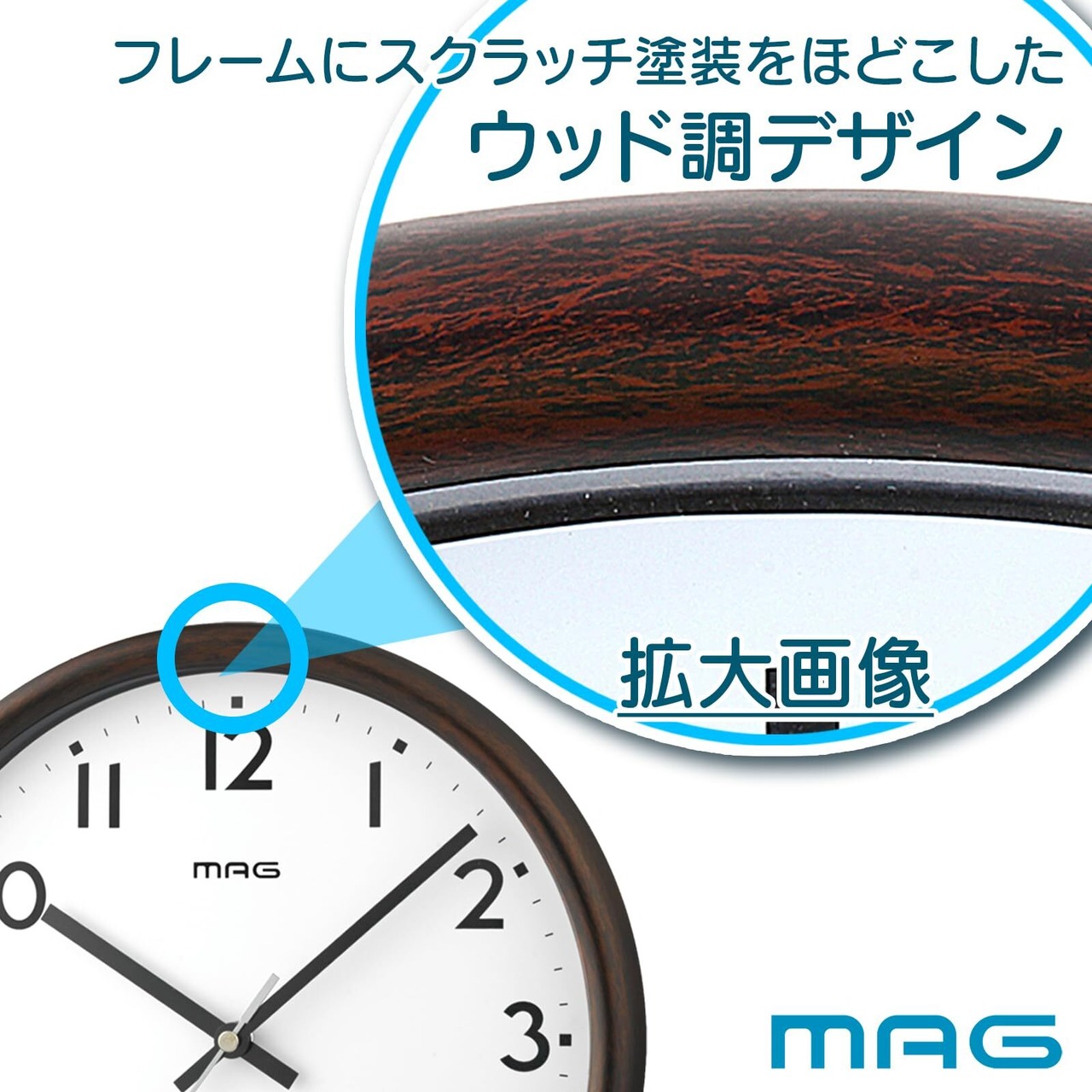 MAG(マグ) 掛け時計 壁掛け時計 電波時計 アナログ かわいい おしゃれ シンプル インテリア 北欧 木目調 ウッディ 直径27.8㎝ 夜間秒針停止 ブラウン トルテ W-768 BR-Z ノア精密