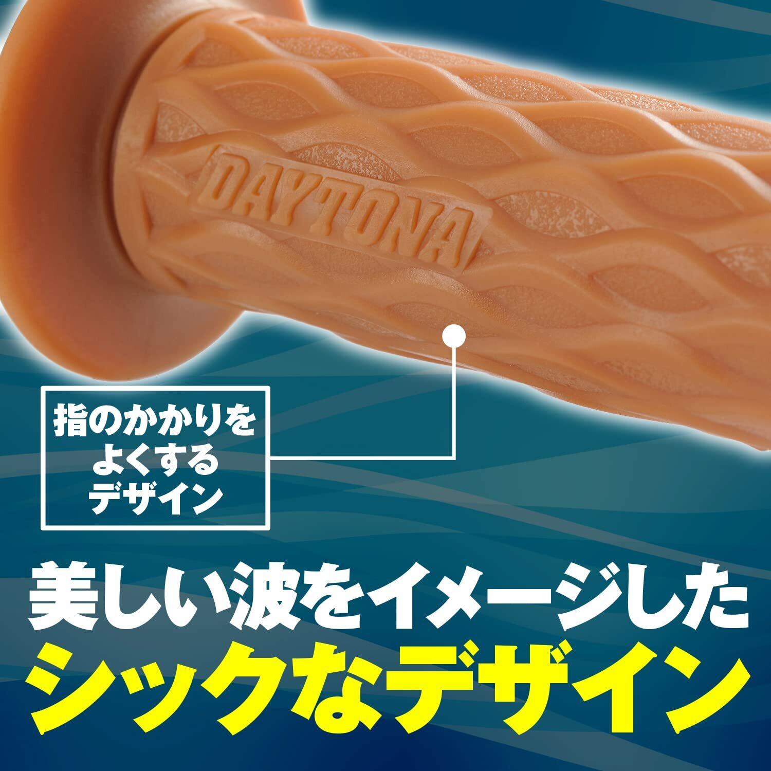 エルゴノミクス(人間工学)デザインを採り入れたデイトナオリジナルグリップ。アクセルを捻ったとき滑らない左右専用の表面パターンと、グリップ力に優れるやわらかな素材を外側、硬めの素材を内側に組み合わせた2層構造により、長時間のライディングでも疲れません。グリップデザインは美しい波のシックなイメージです。