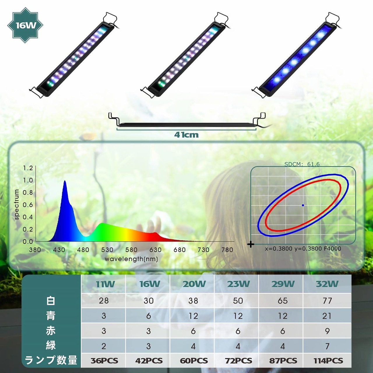 hygger 水槽ライト 6H/8H/12Hタイマー 10段階明るさ調整 3照明モード 水槽用 照明 ledライト アクアリウムライト 防水 水草 育成 熱帯魚 観賞魚 飼育 40-65CMの水槽対応 (16W) | yankees
