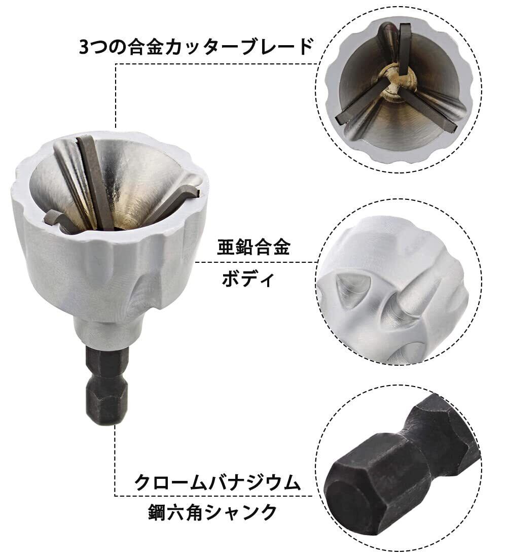 Saipor 面取りカッター 金属 リーマー 面取り ネジバリ取り 寸切り バリ取り 面取りビット ネジバリ面取り 3mm-19mmに適合