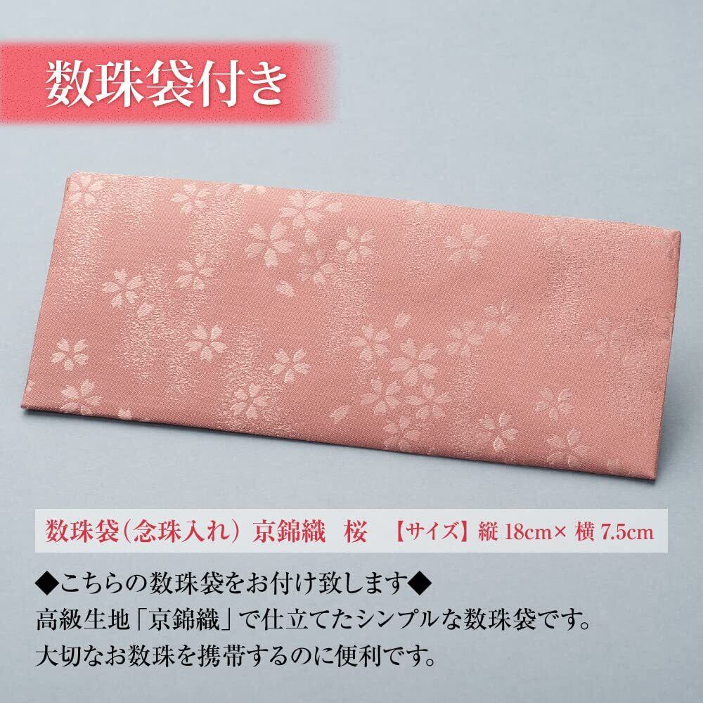[仏壇屋 滝田商店] 数珠 女性用 紅水晶(ローズクォーツ) 7mm玉 正絹梵天房 数珠袋付き すべての宗派で使える 京念珠 証明書付