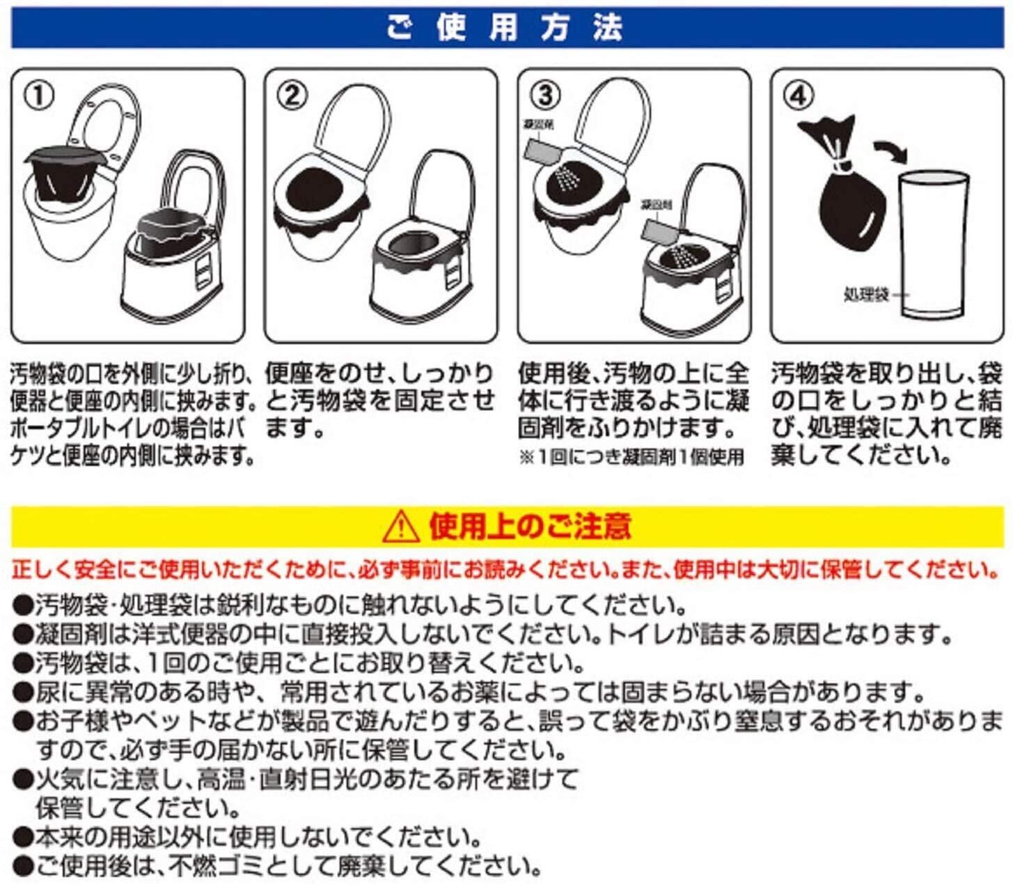 ・使用後、汚物袋の中の汚物に凝固剤をふりかける